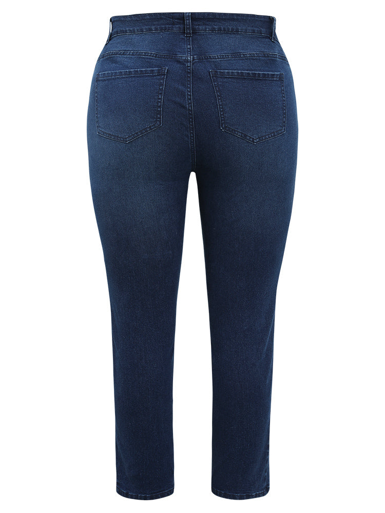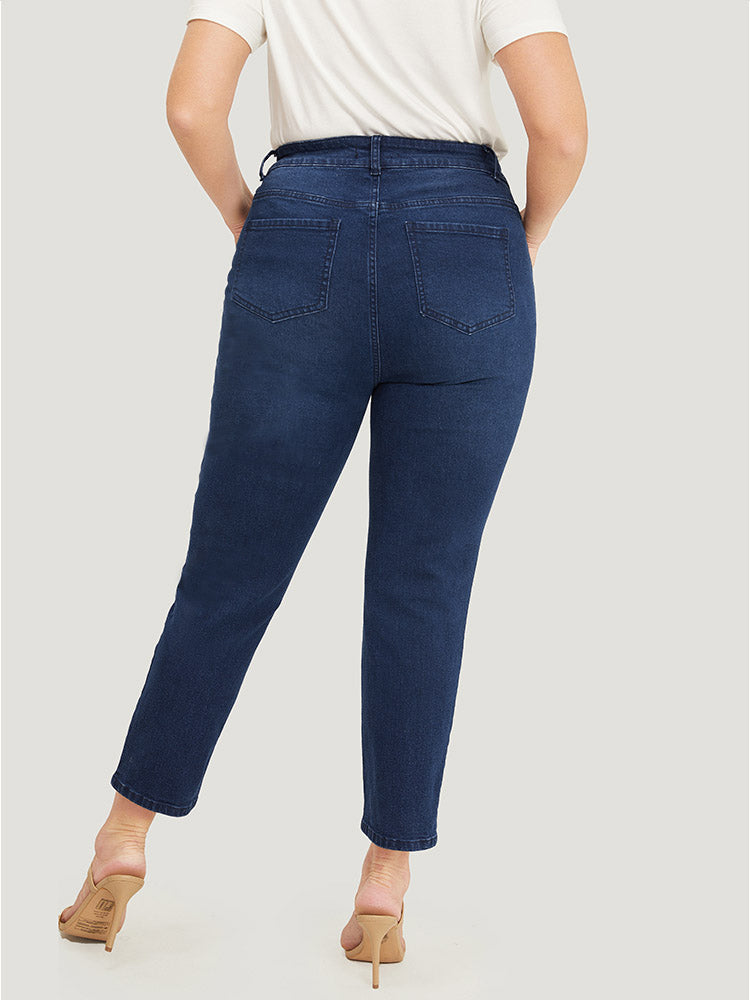 Straight Very Stretchy High Rise Dark Wash Embroidered Trim Jeans