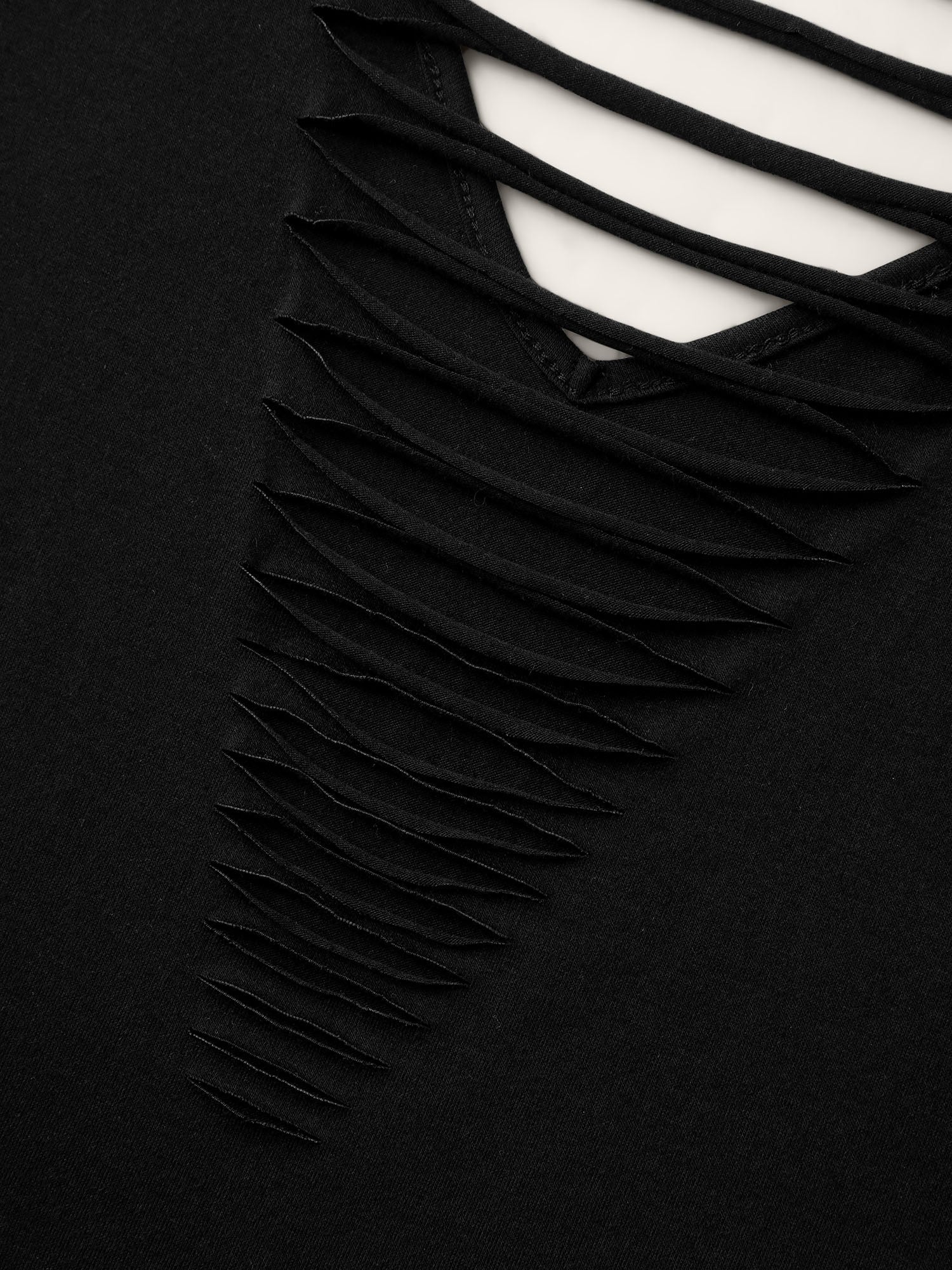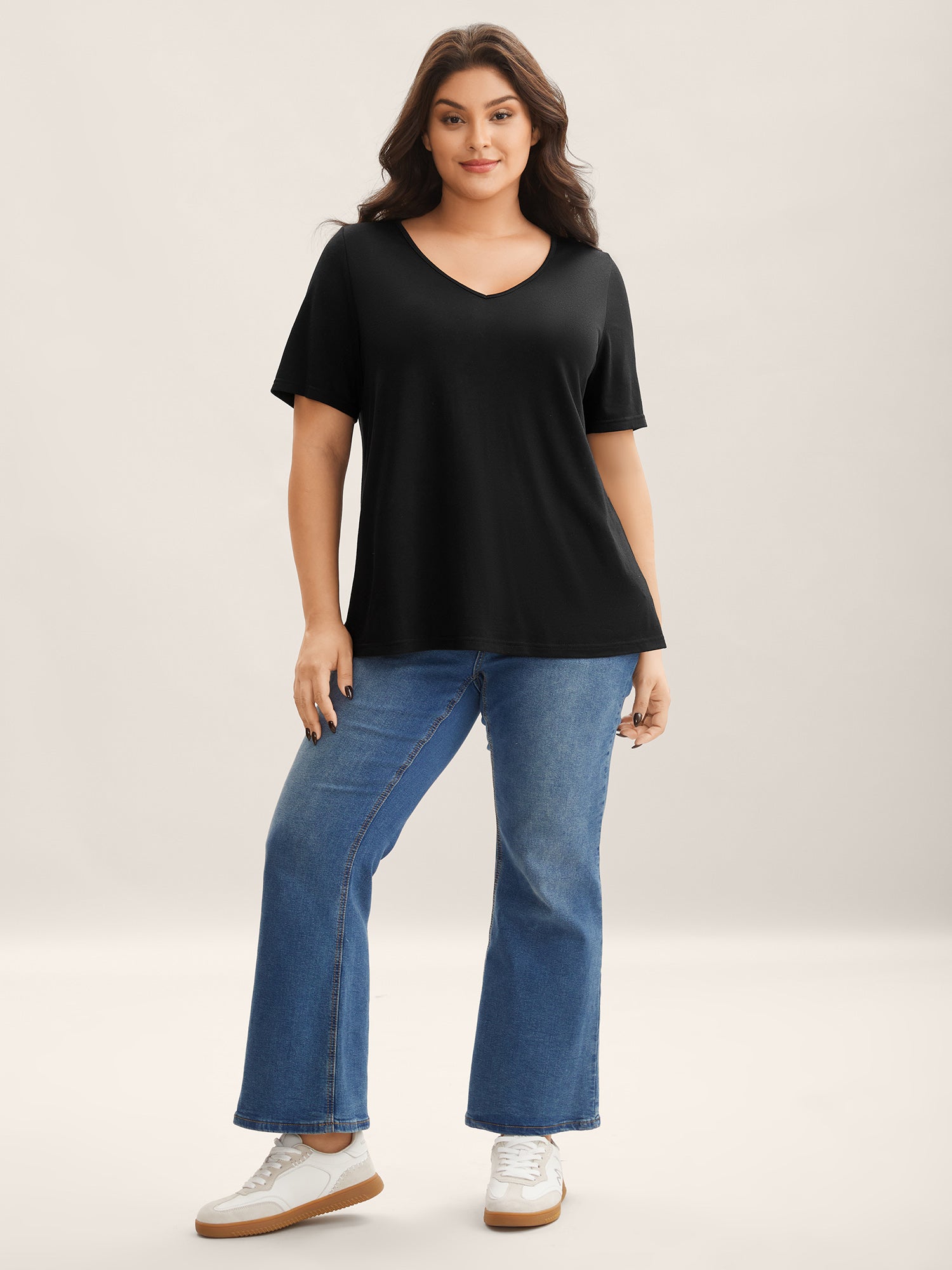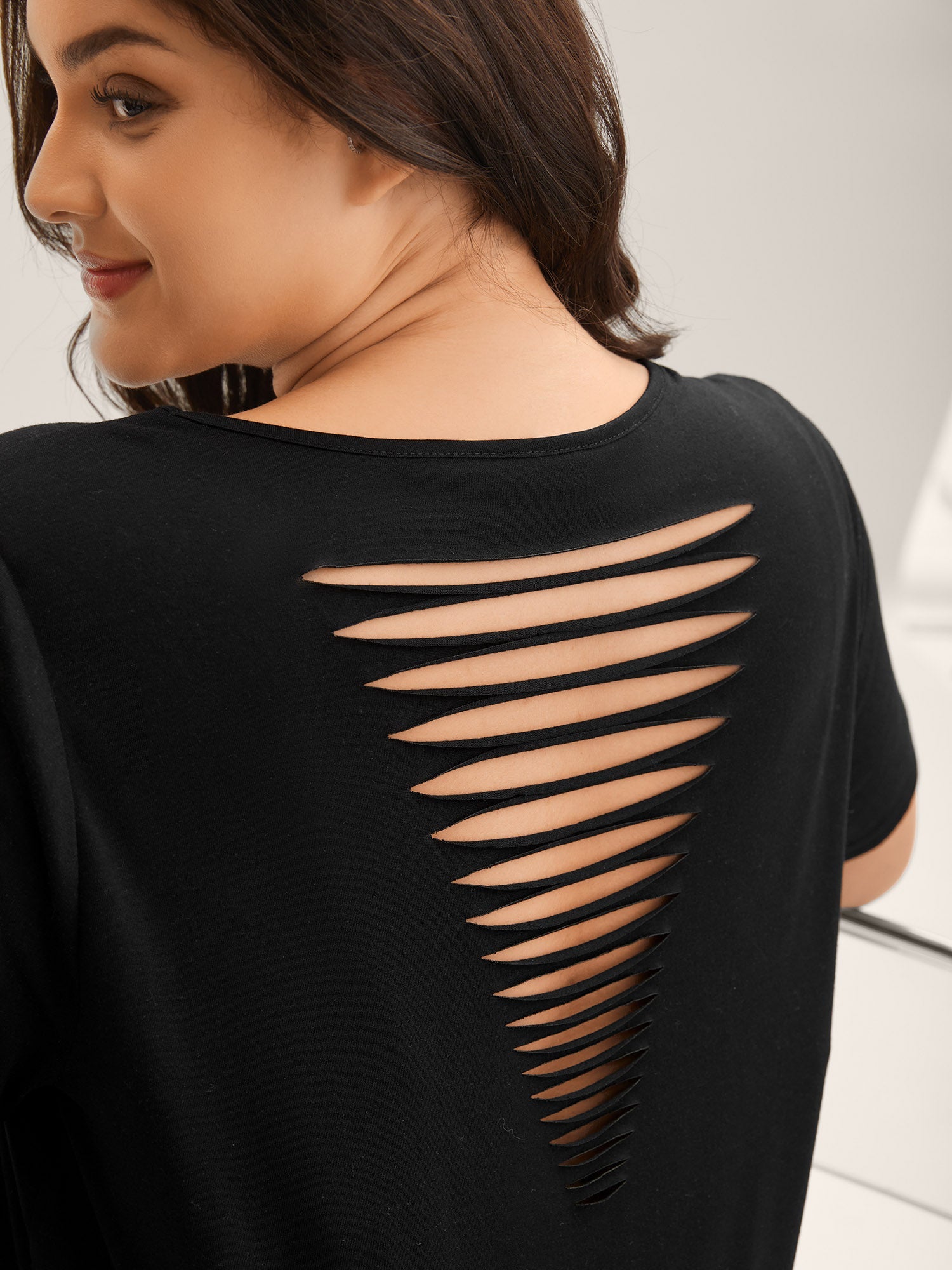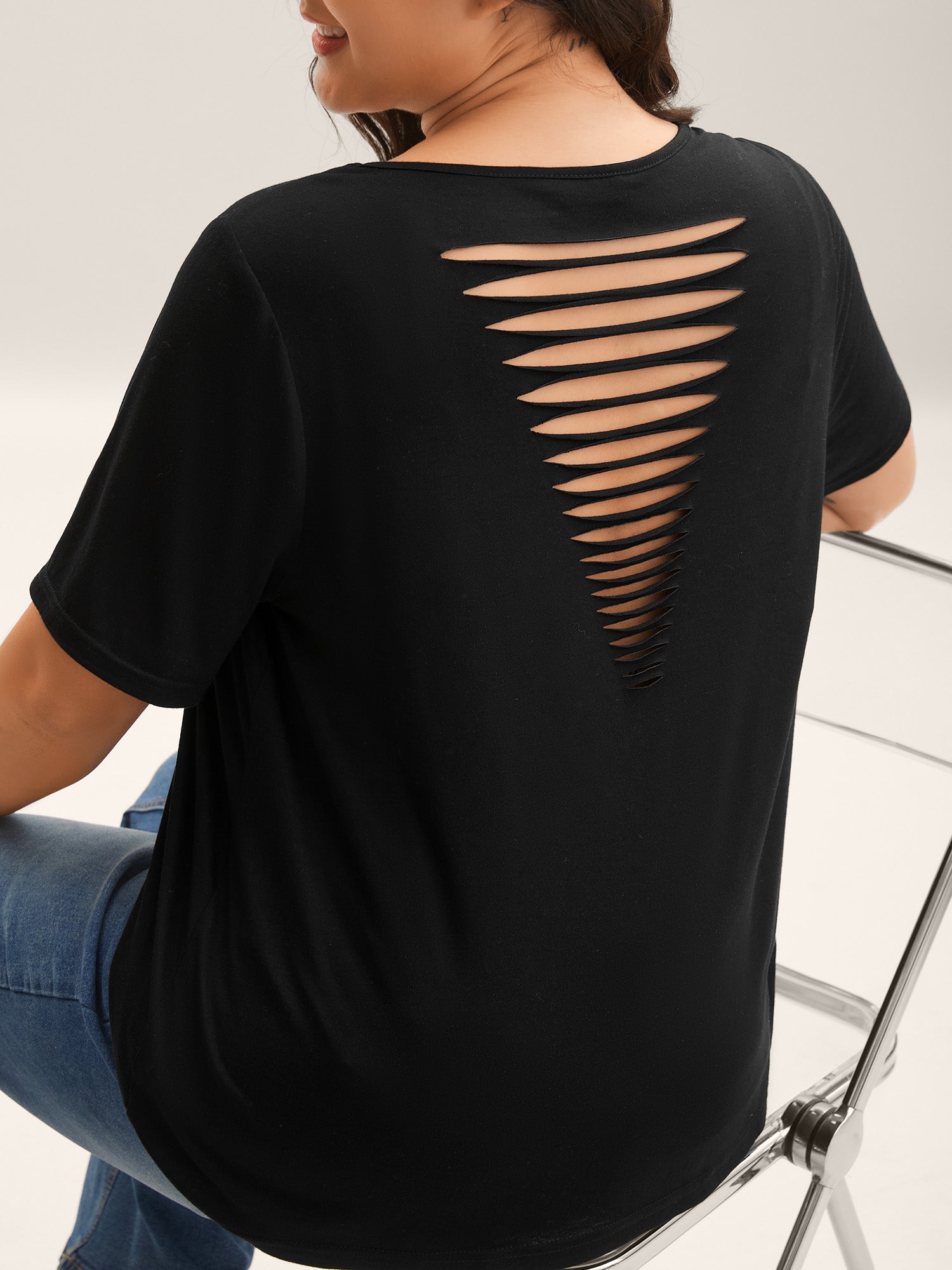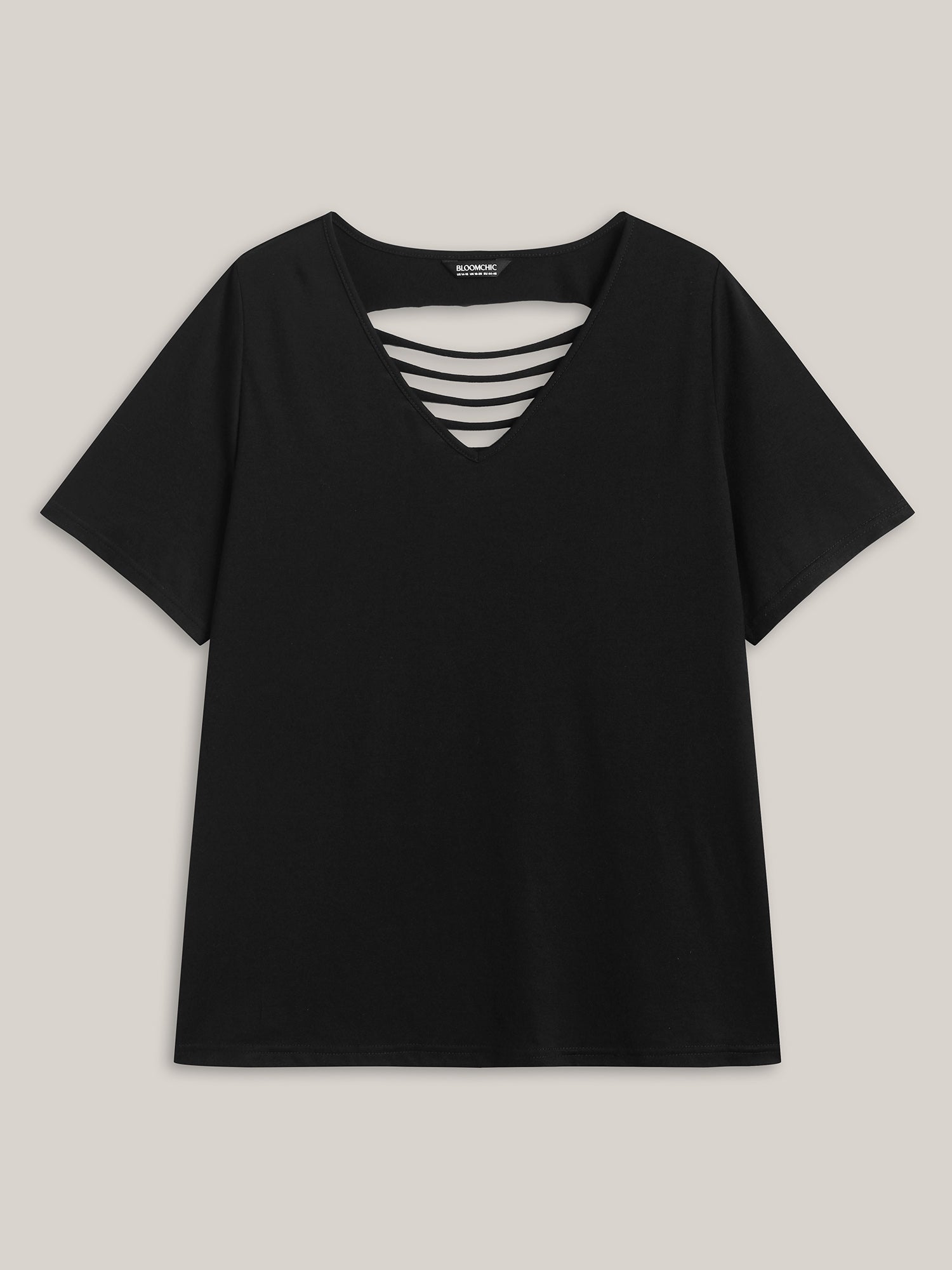 Stretchy Back Cut-Out V-Neck T-Shirt