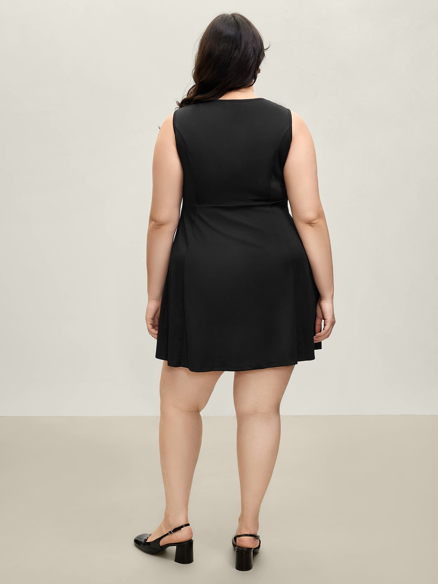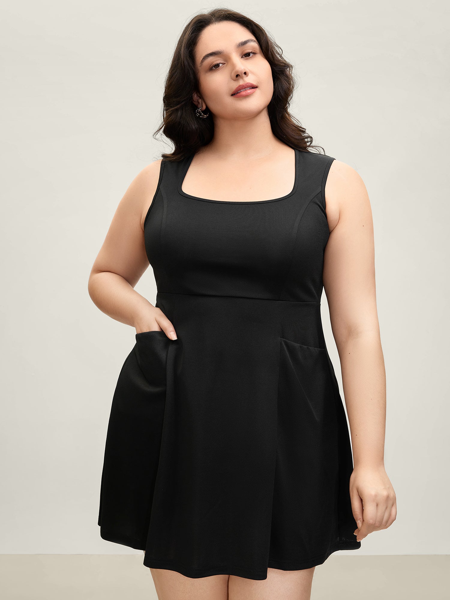 Stretchy Pockets Cinched-Waist Flared Midi Dress