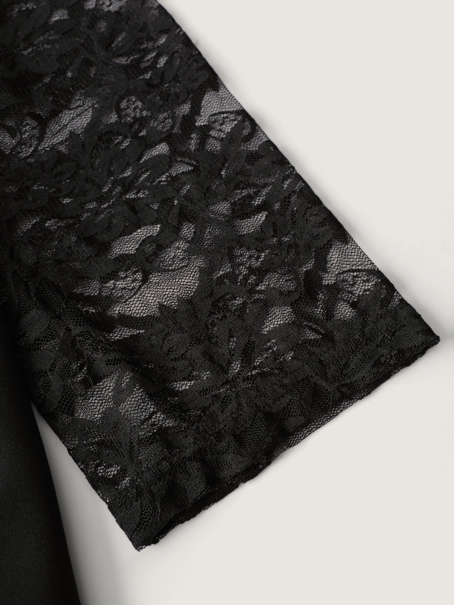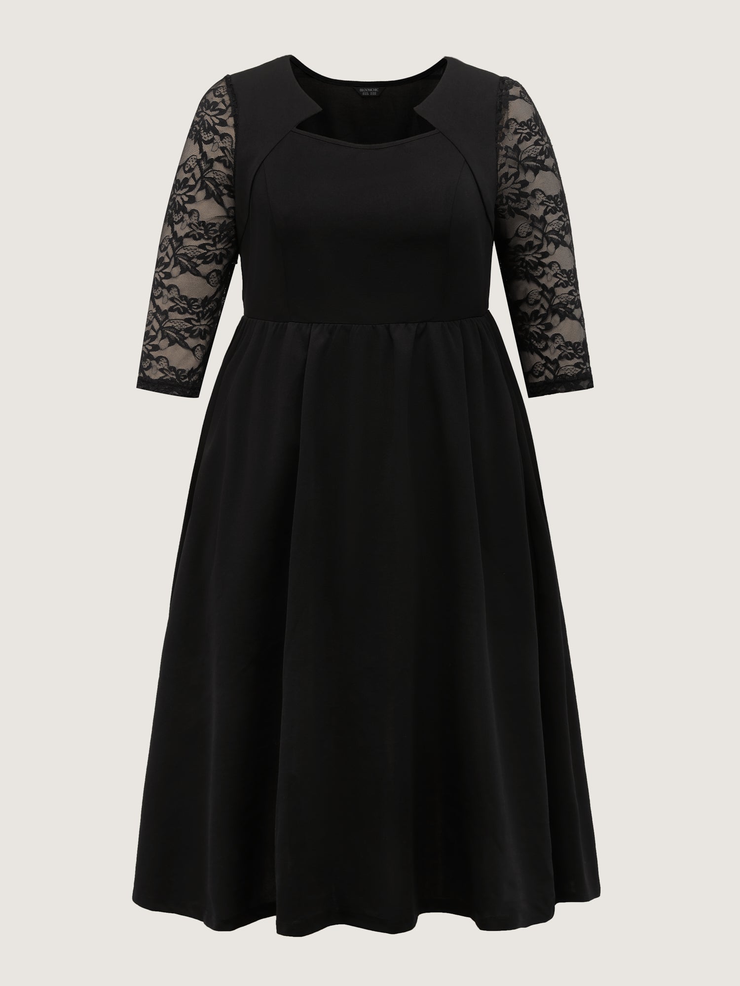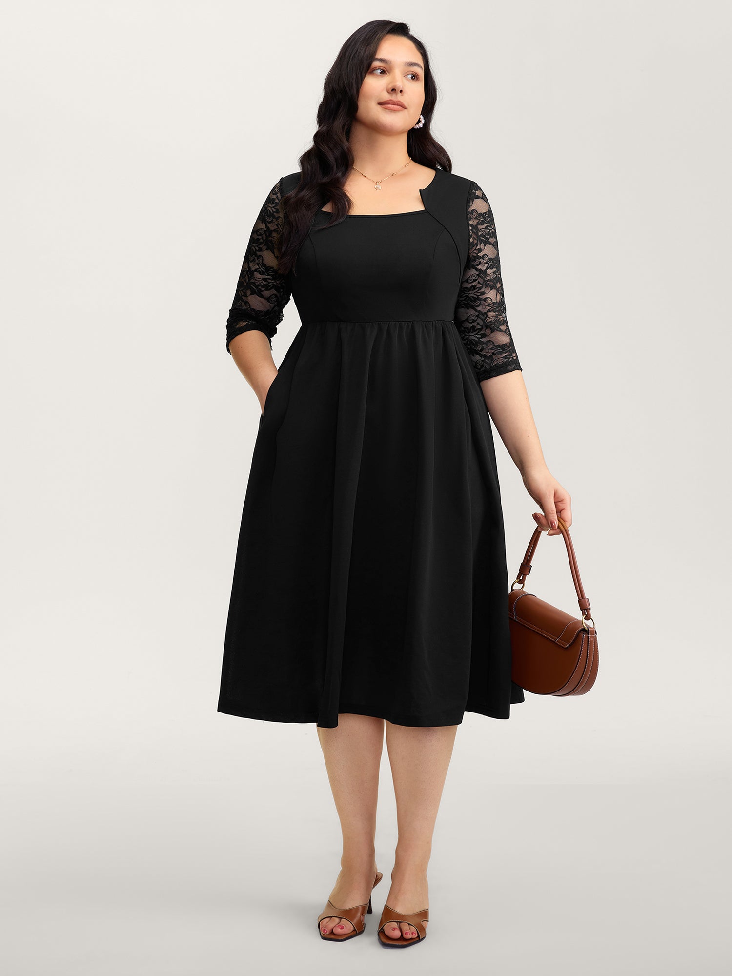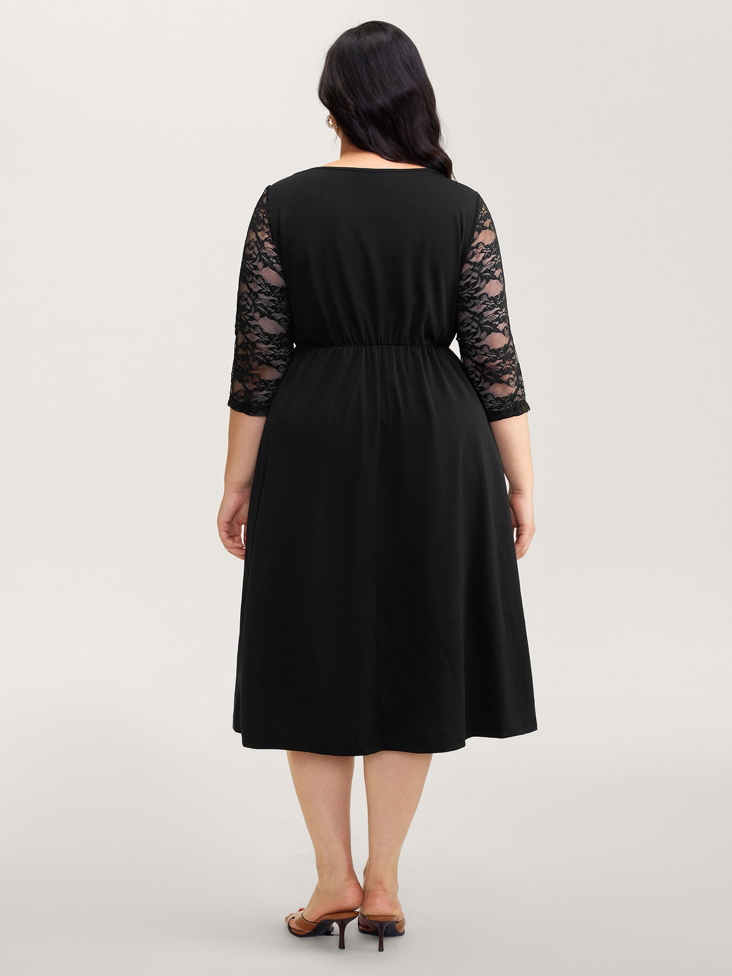 Stretchy Sheer Sleeve Cinched-Waist Midi Dress