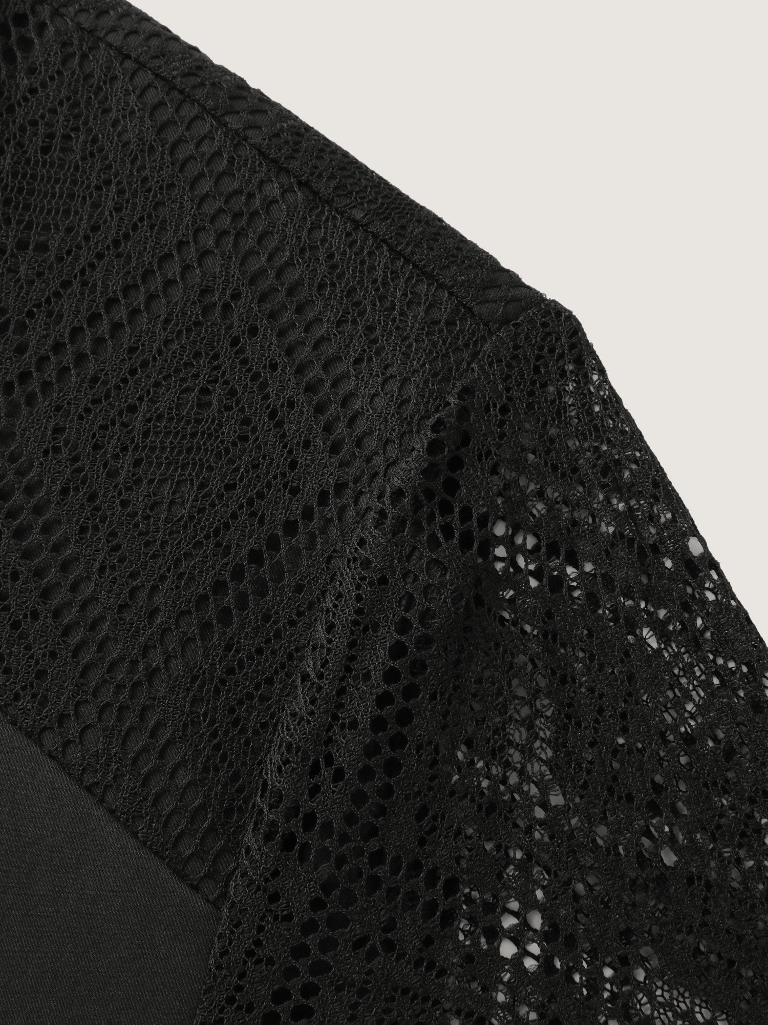Stretchy Textured Sheer Sleeve Contrast Blazer