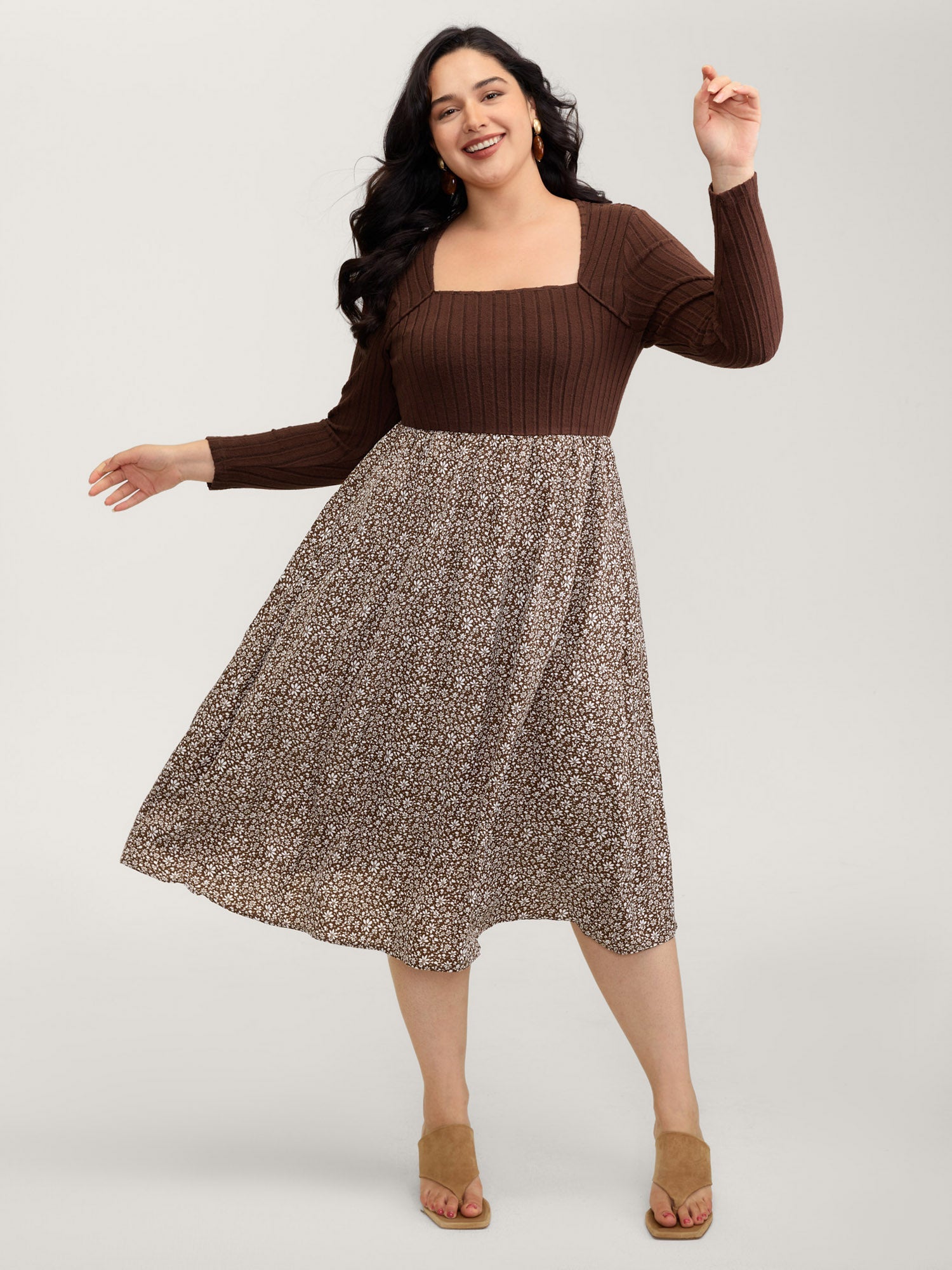 Stretchy Waist Retro Contrast Midi Dress