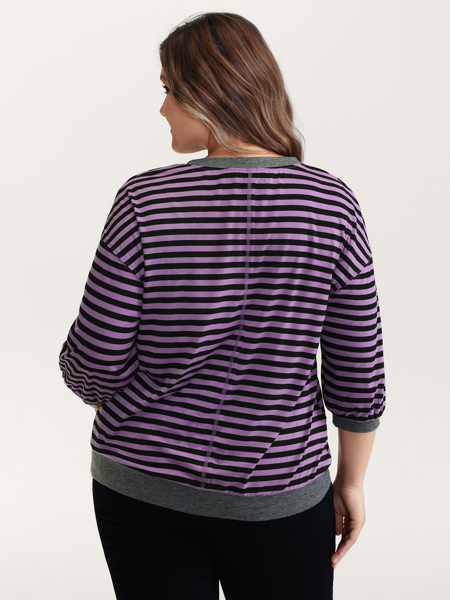 Stripe Color Contrast Stretchy T-Shirt
