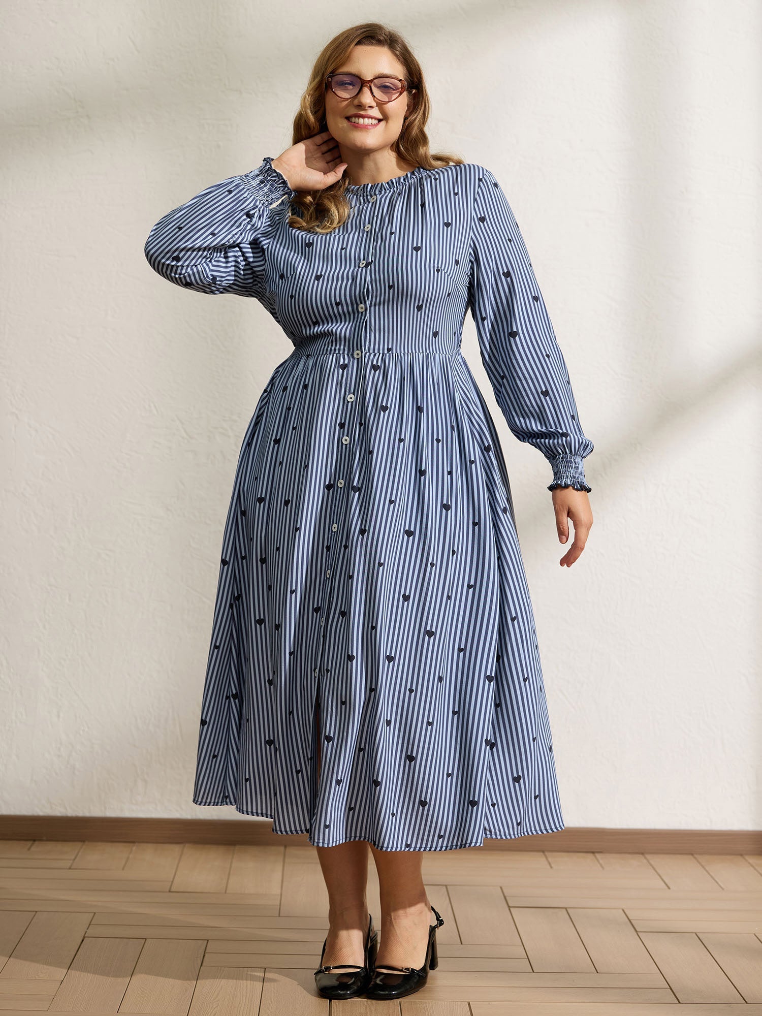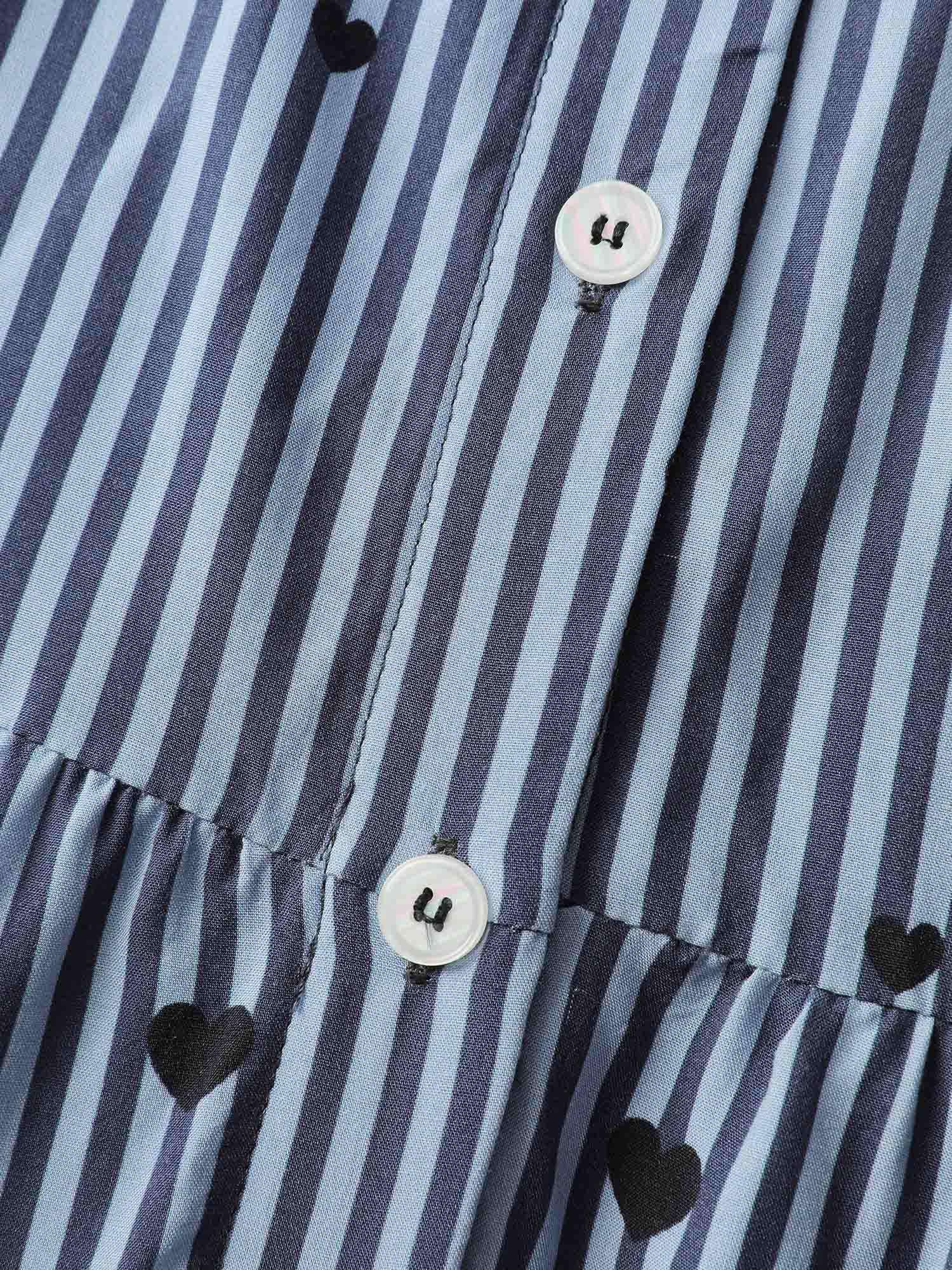 Stripe Hearts Pocket Shirt Maxi Dress