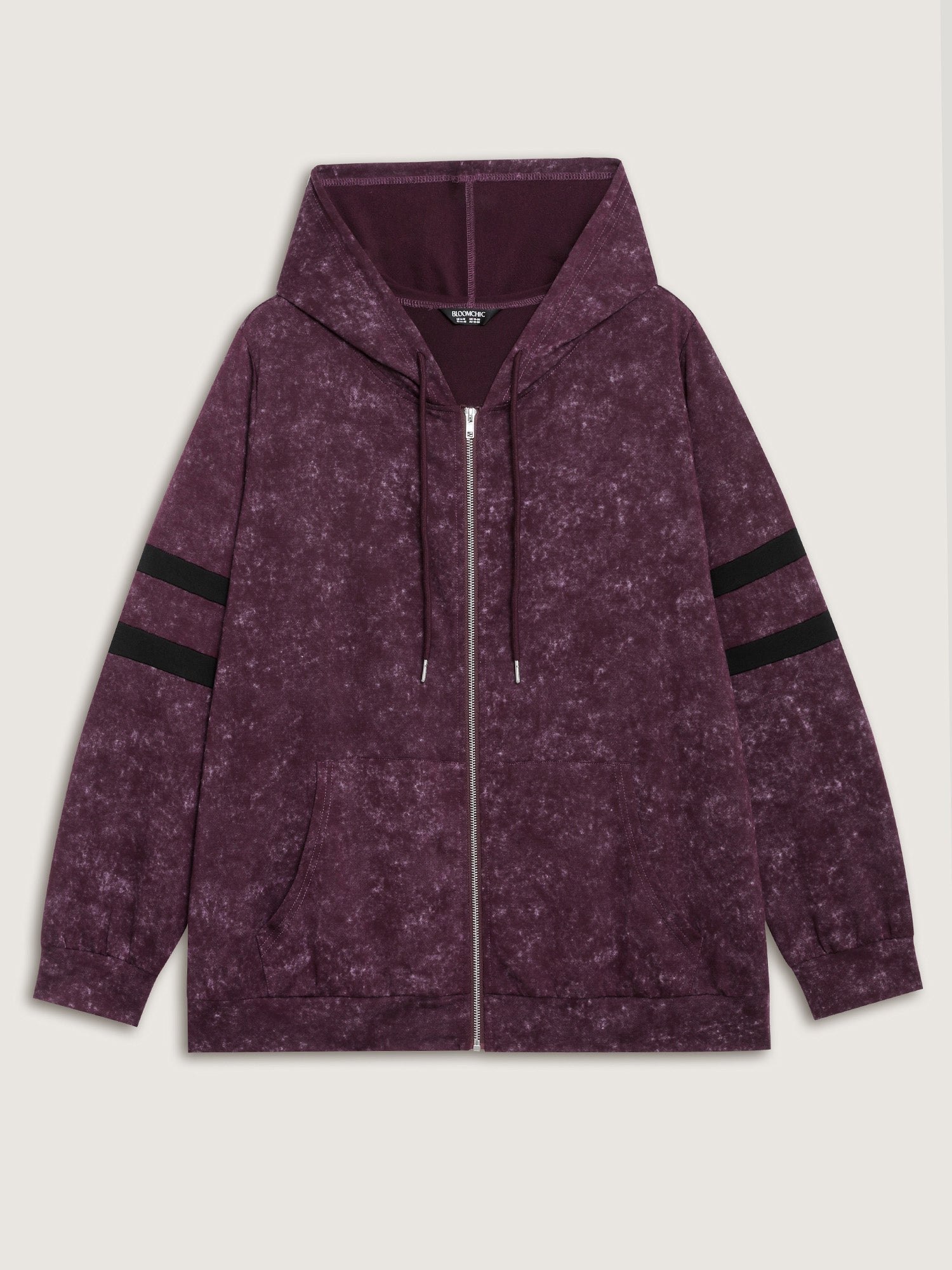 Stripe Sleeve Zipper-Front Pockets Jacket