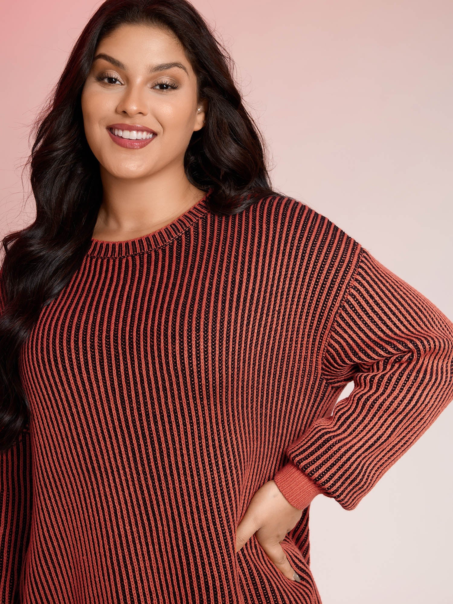 Stripe Textured Round Neck Pullover