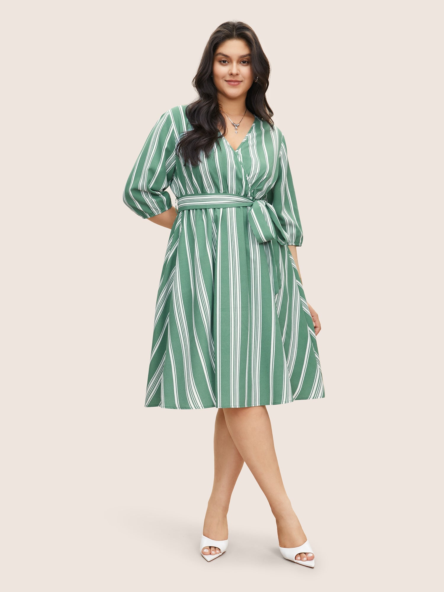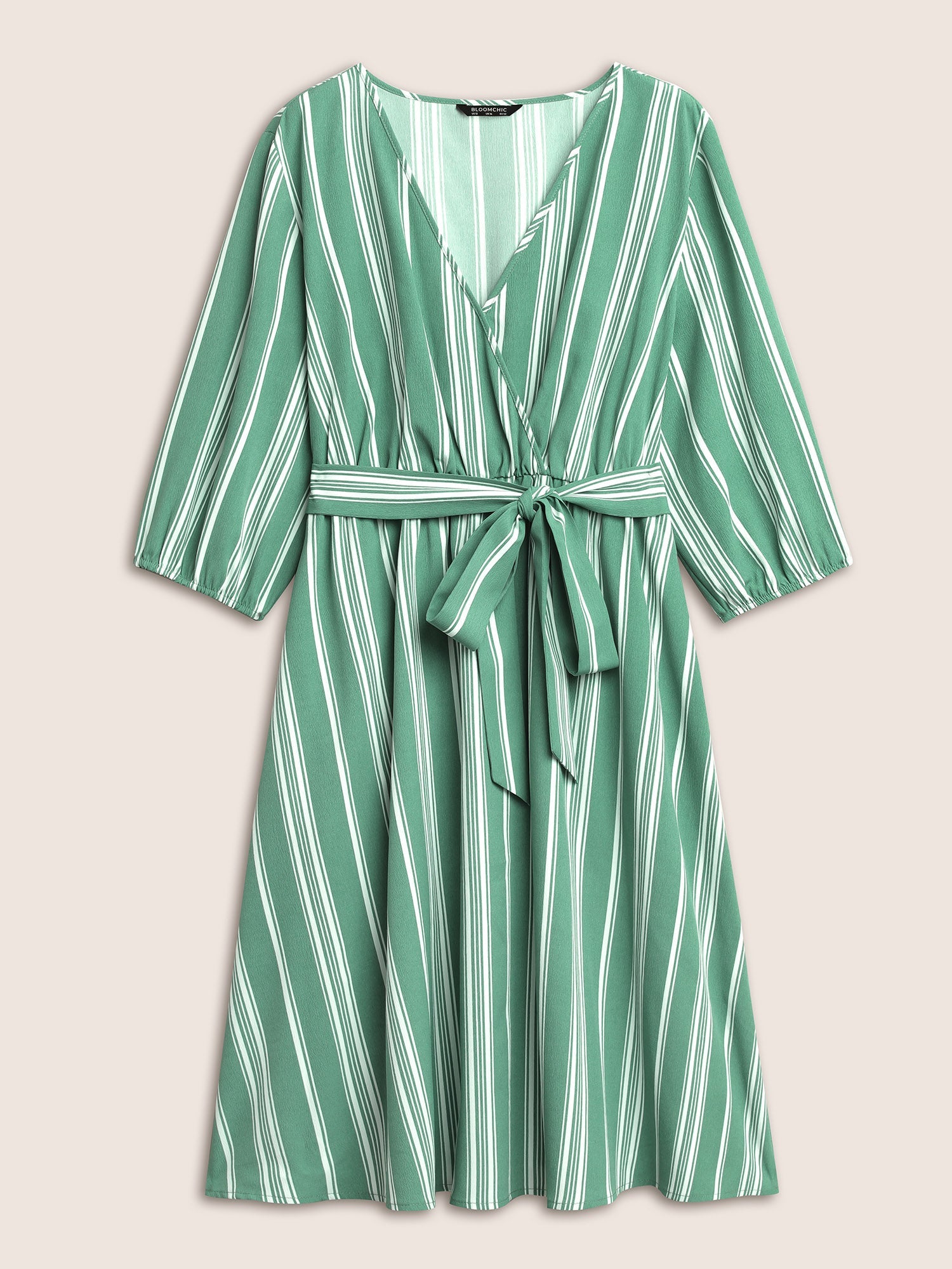 Striped Elastic Waist Belted Wrap Dress