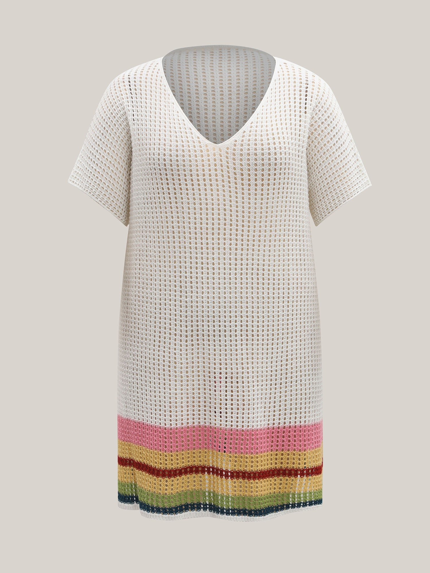 Striped Hem Cut-Out Slit Swim Cover-Up
