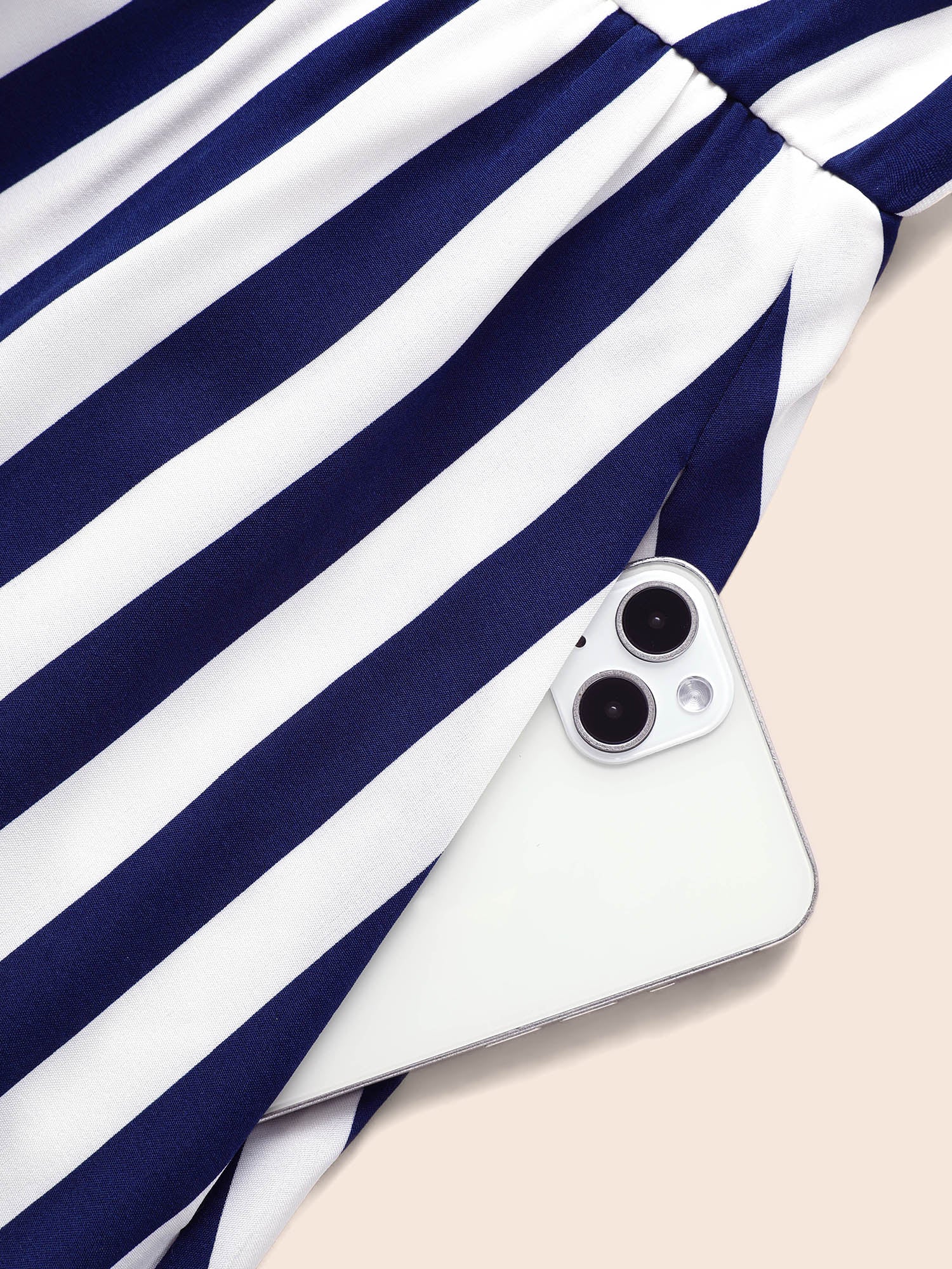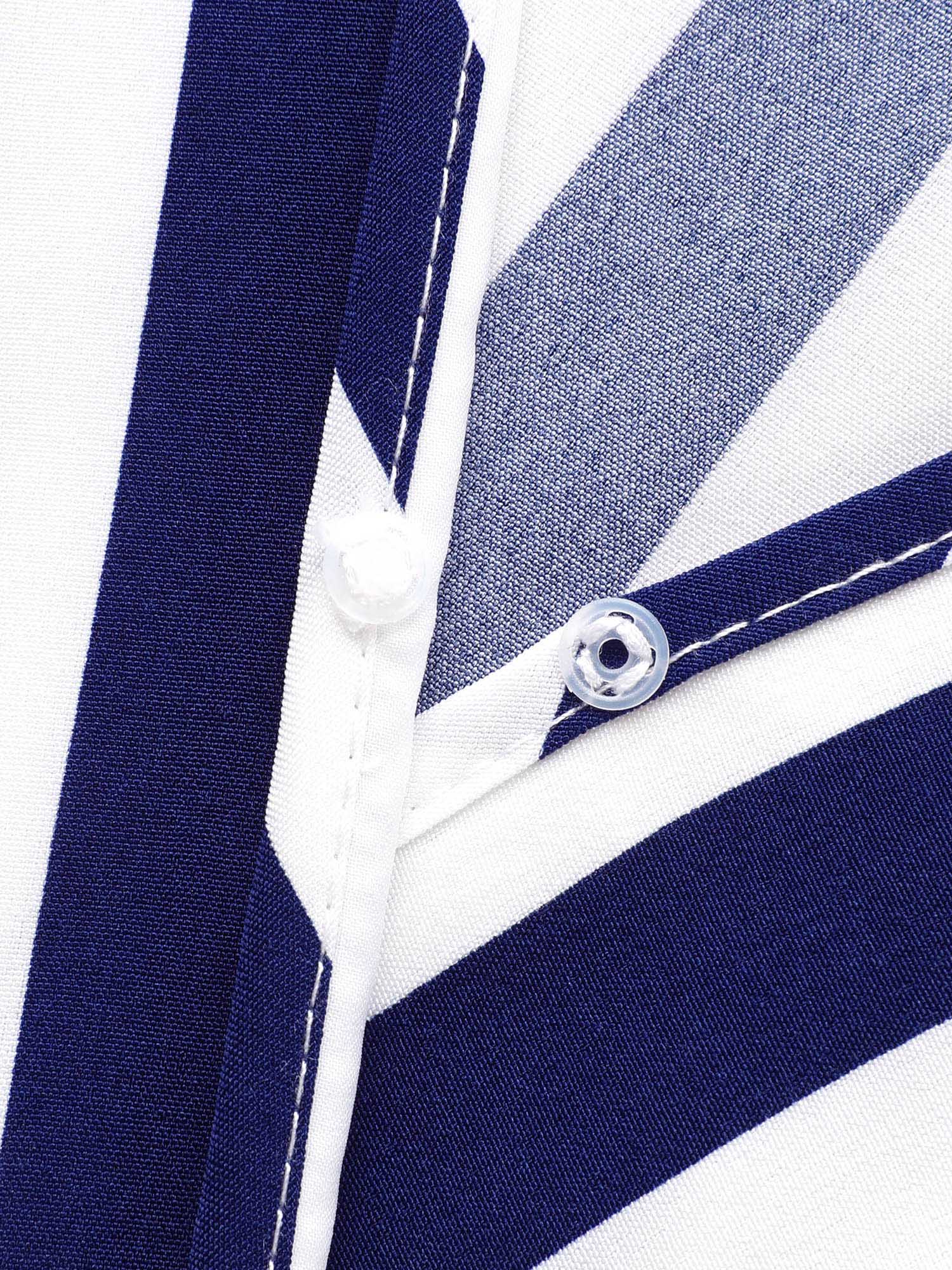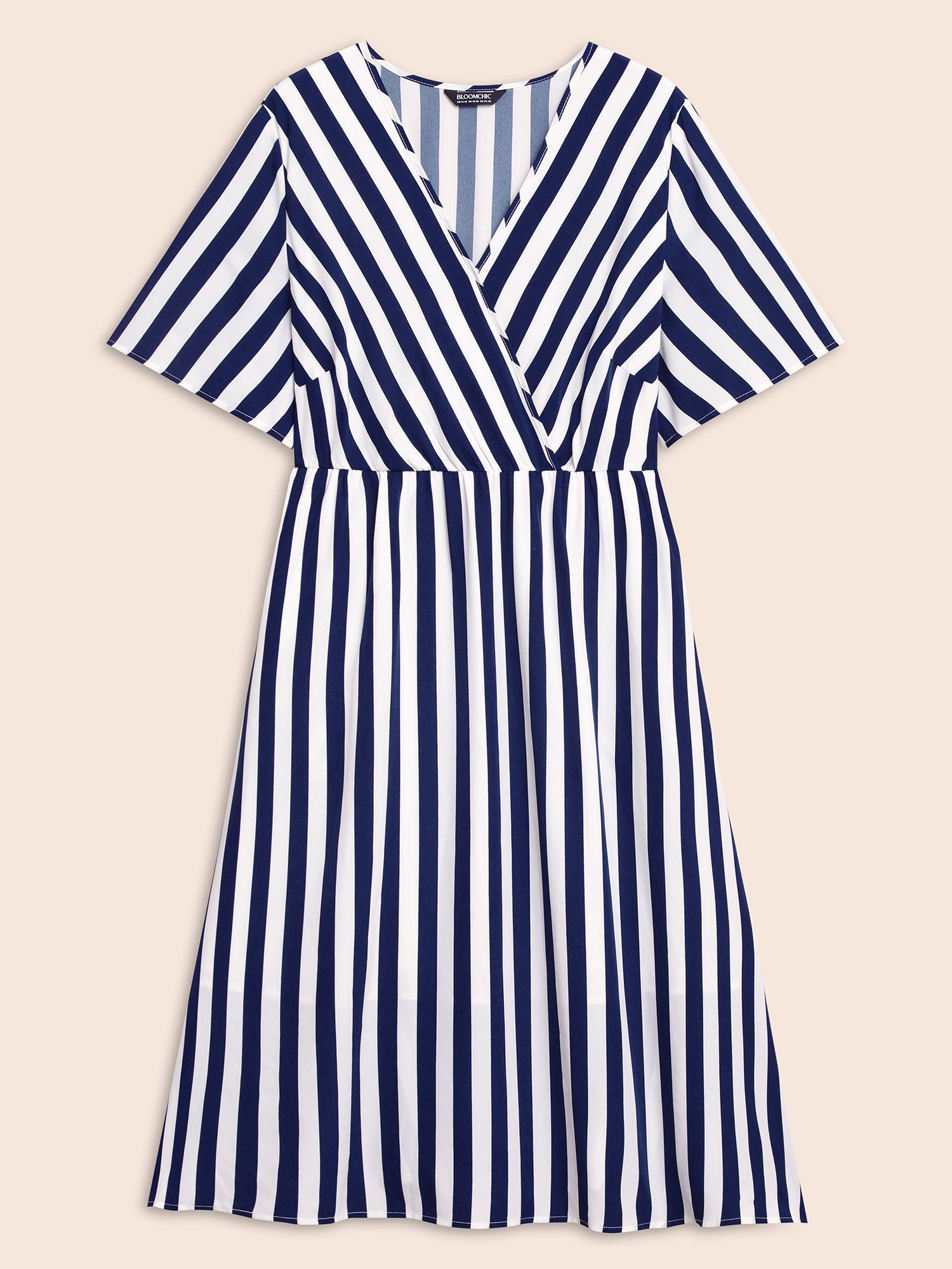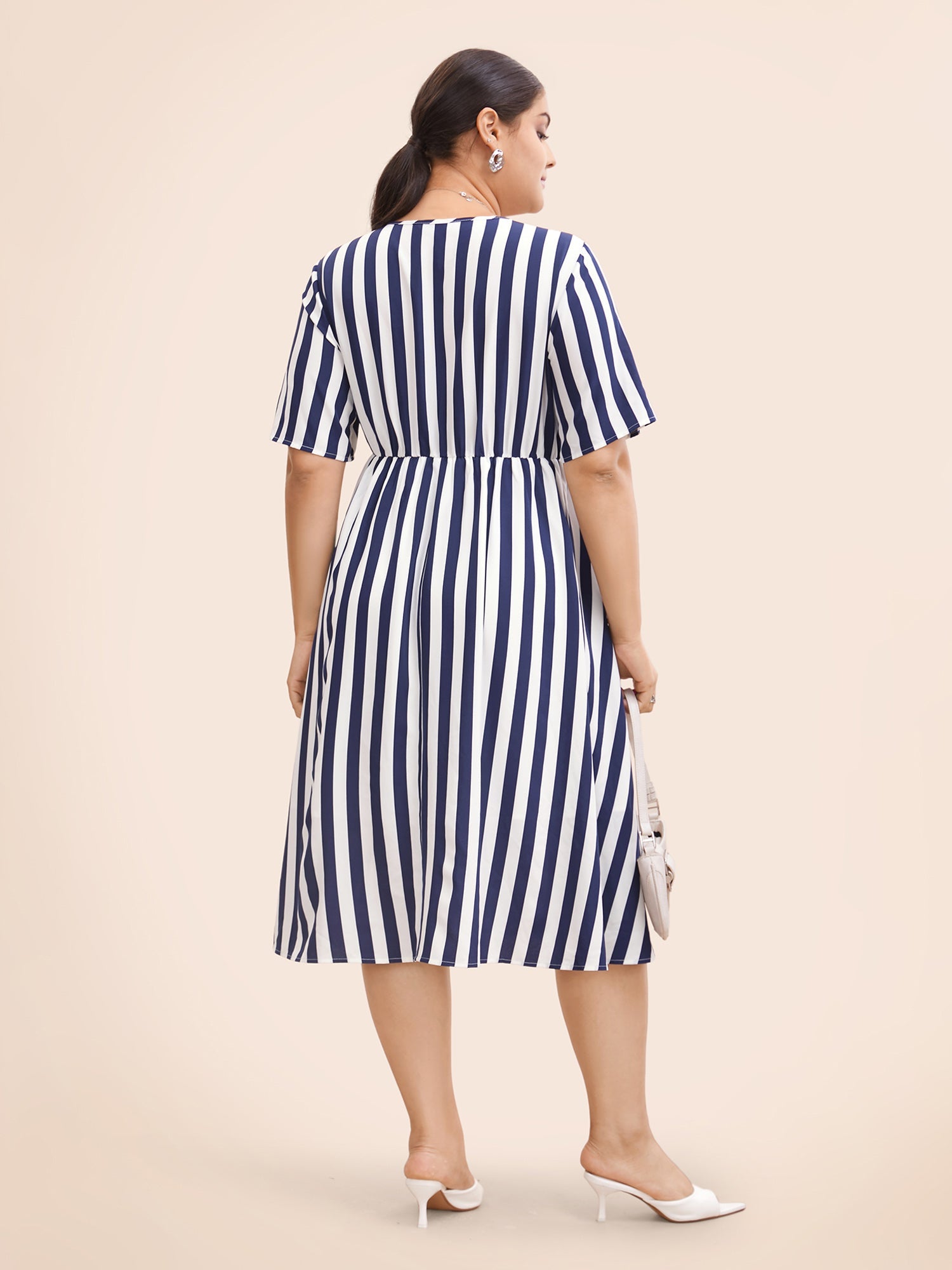 Striped Overlap Collar Ruffle Sleeve Midi Dress