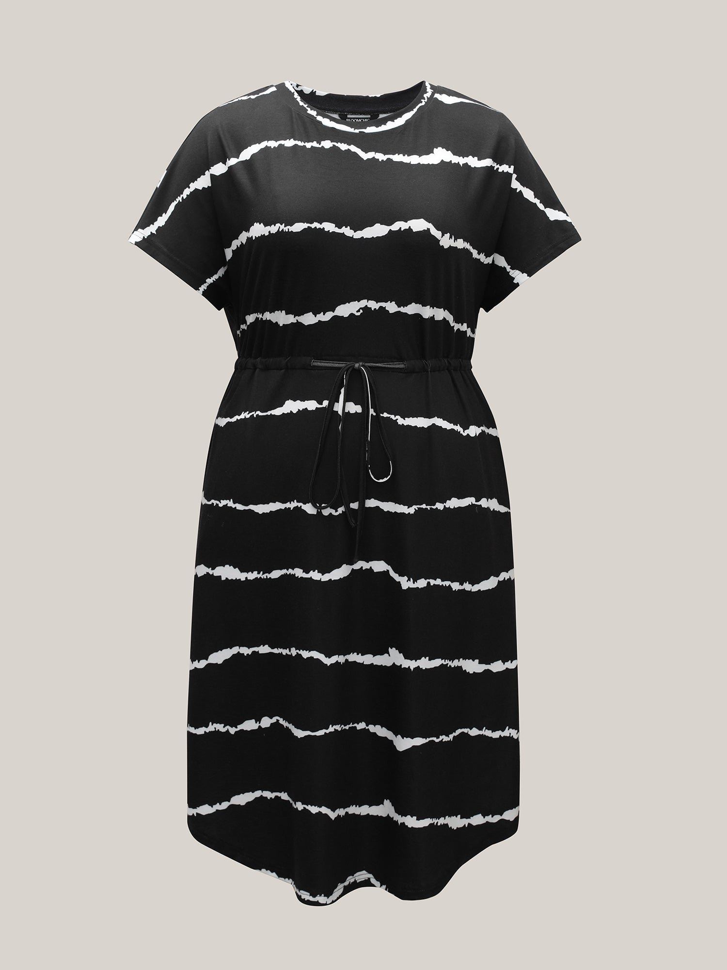 Striped Waist-Tie Dolman Sleeve Midi Dress