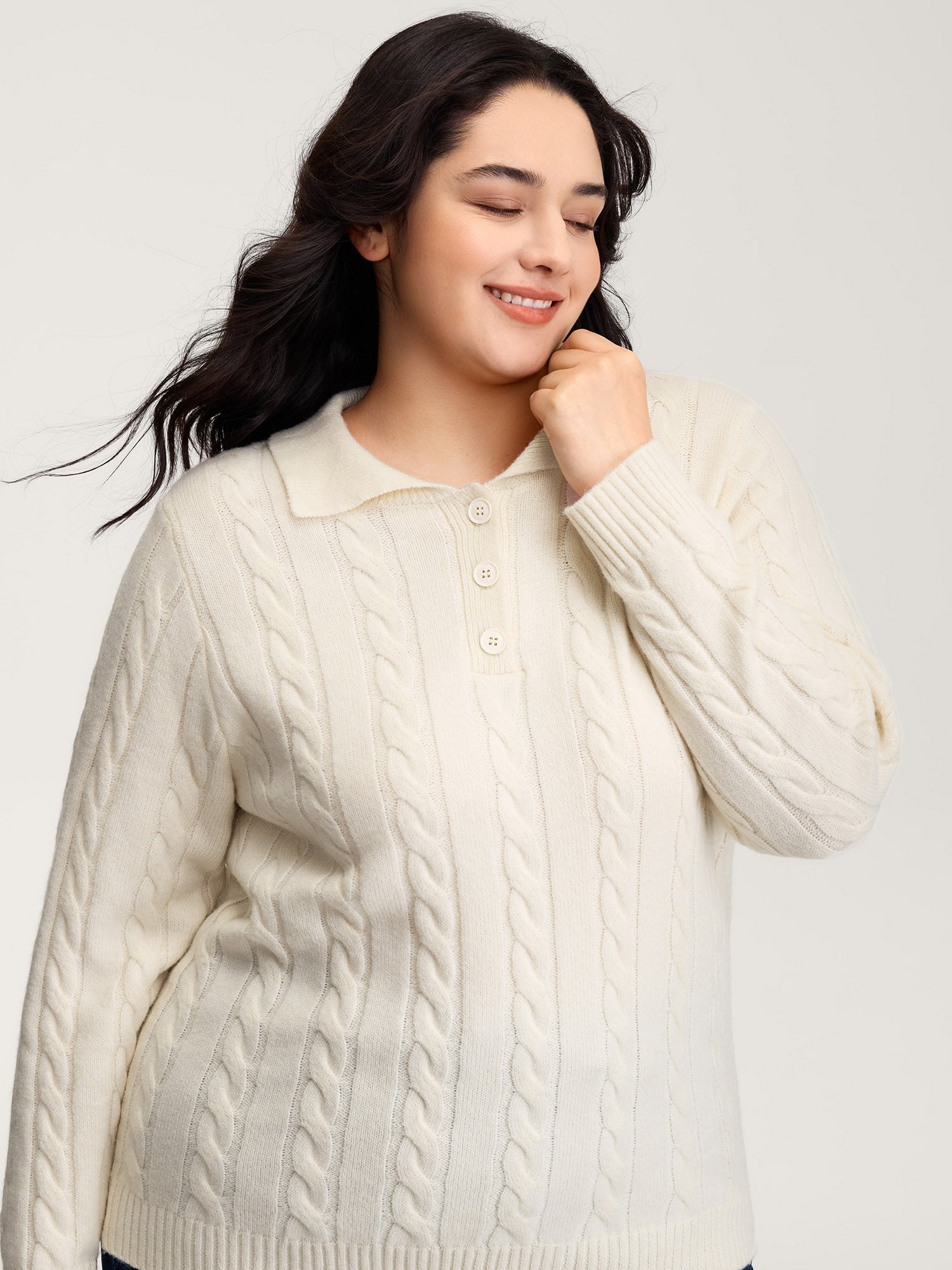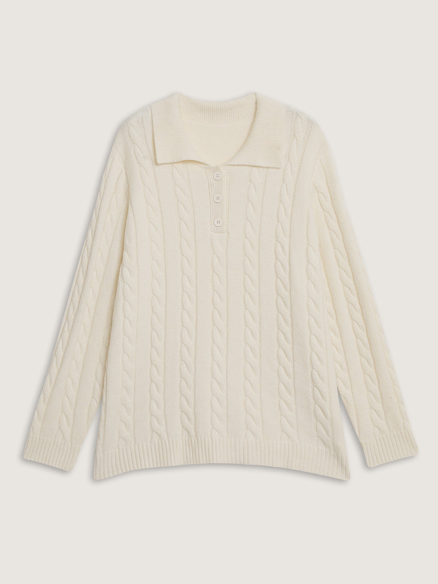 Supersoft Cable Knit Polo Collar Solid Pullover
