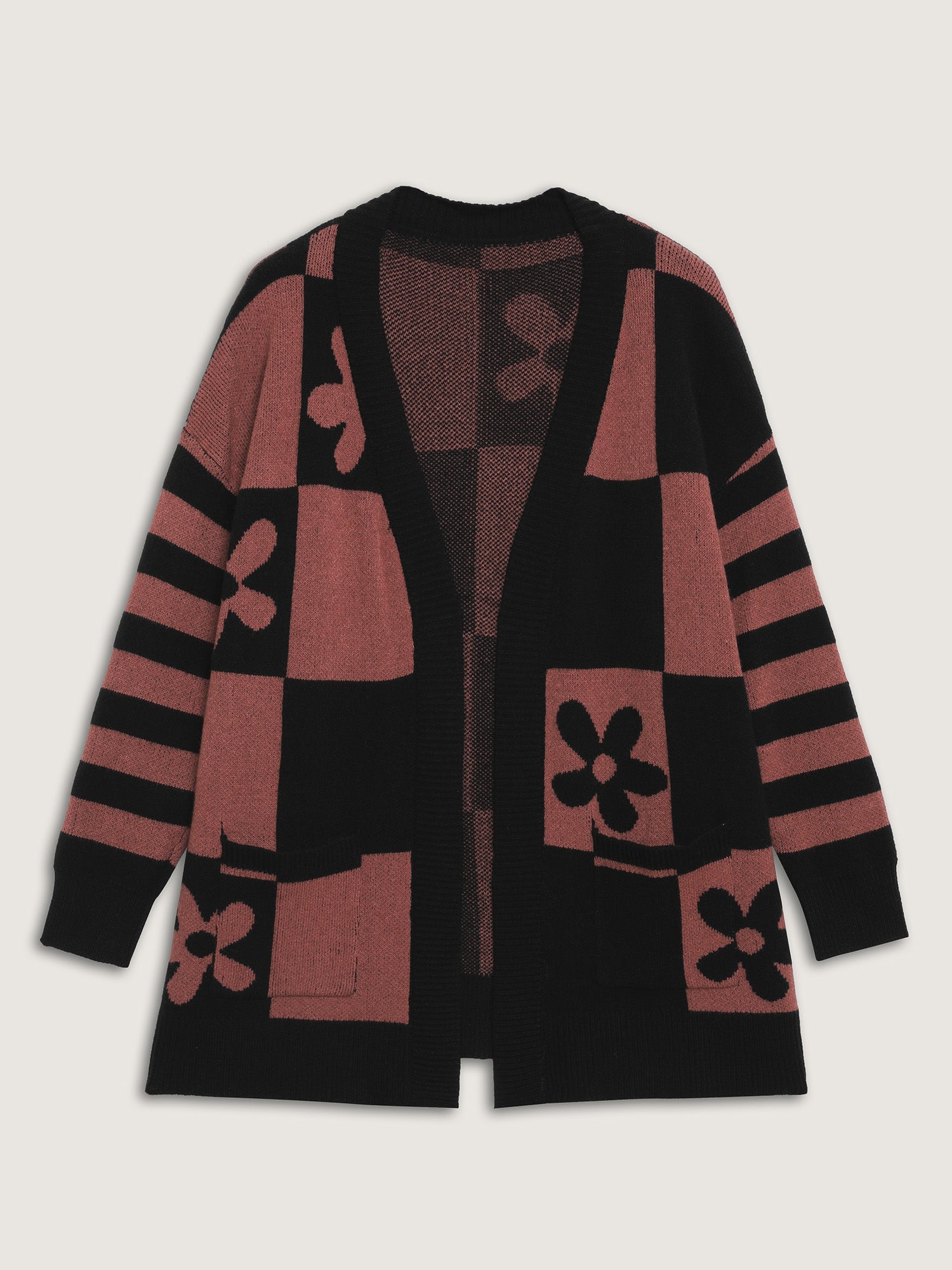 Supersoft Checkered Floral Superstretchy Knit Cardigan