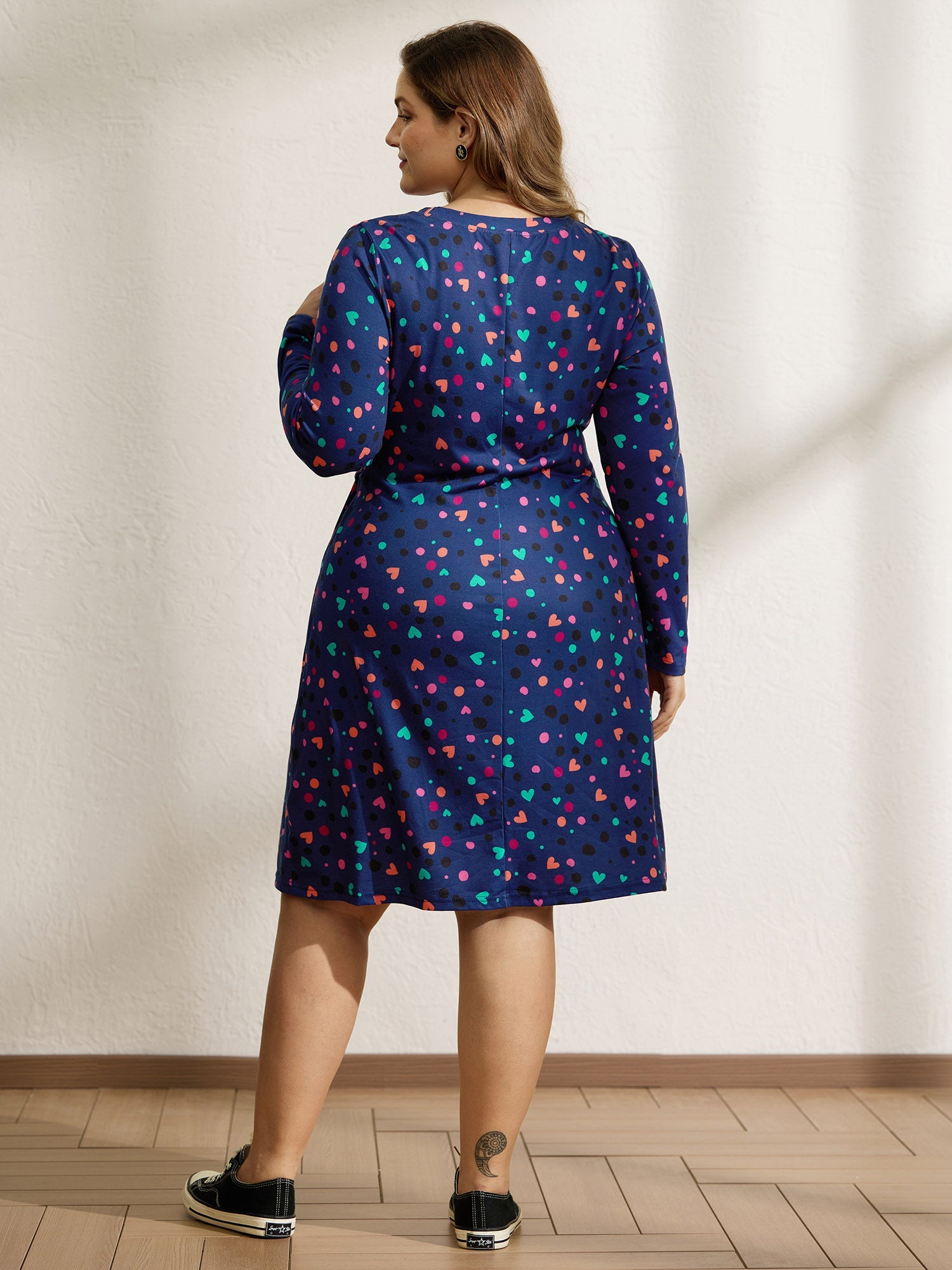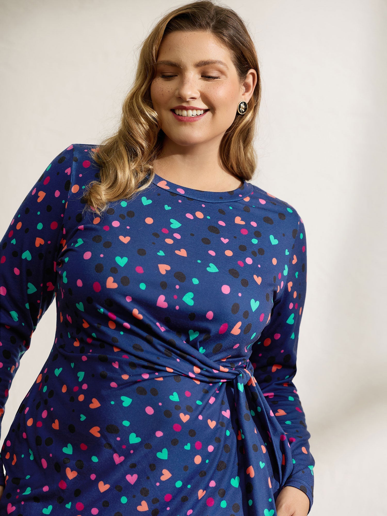 Supersoft Colorful Polka Dot Hearts Knot Midi Dress