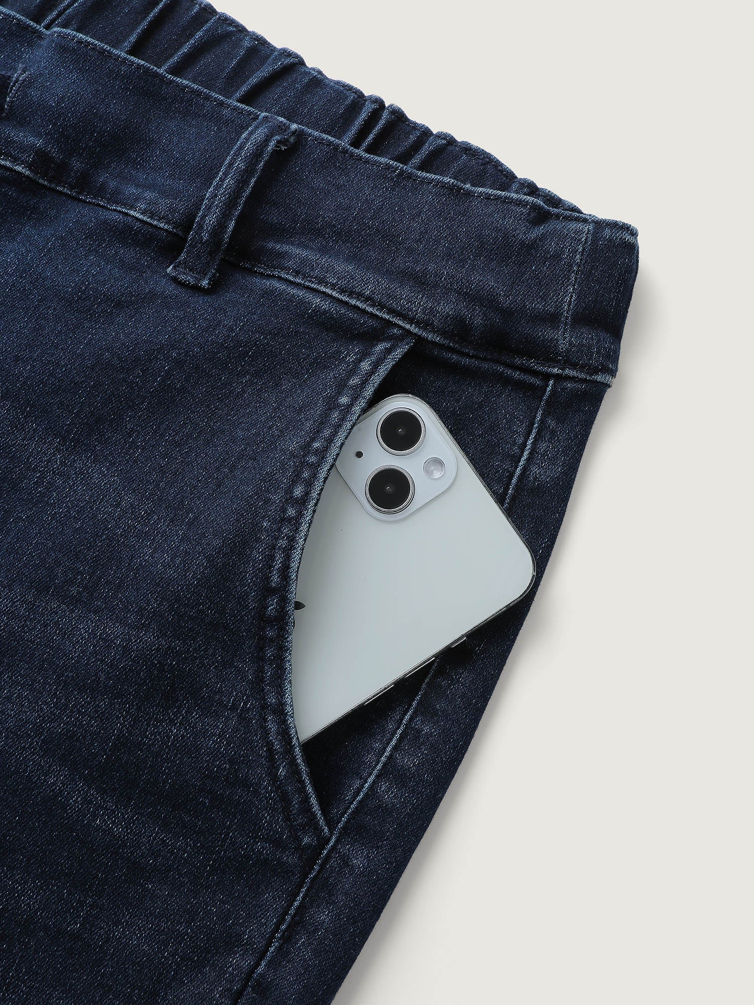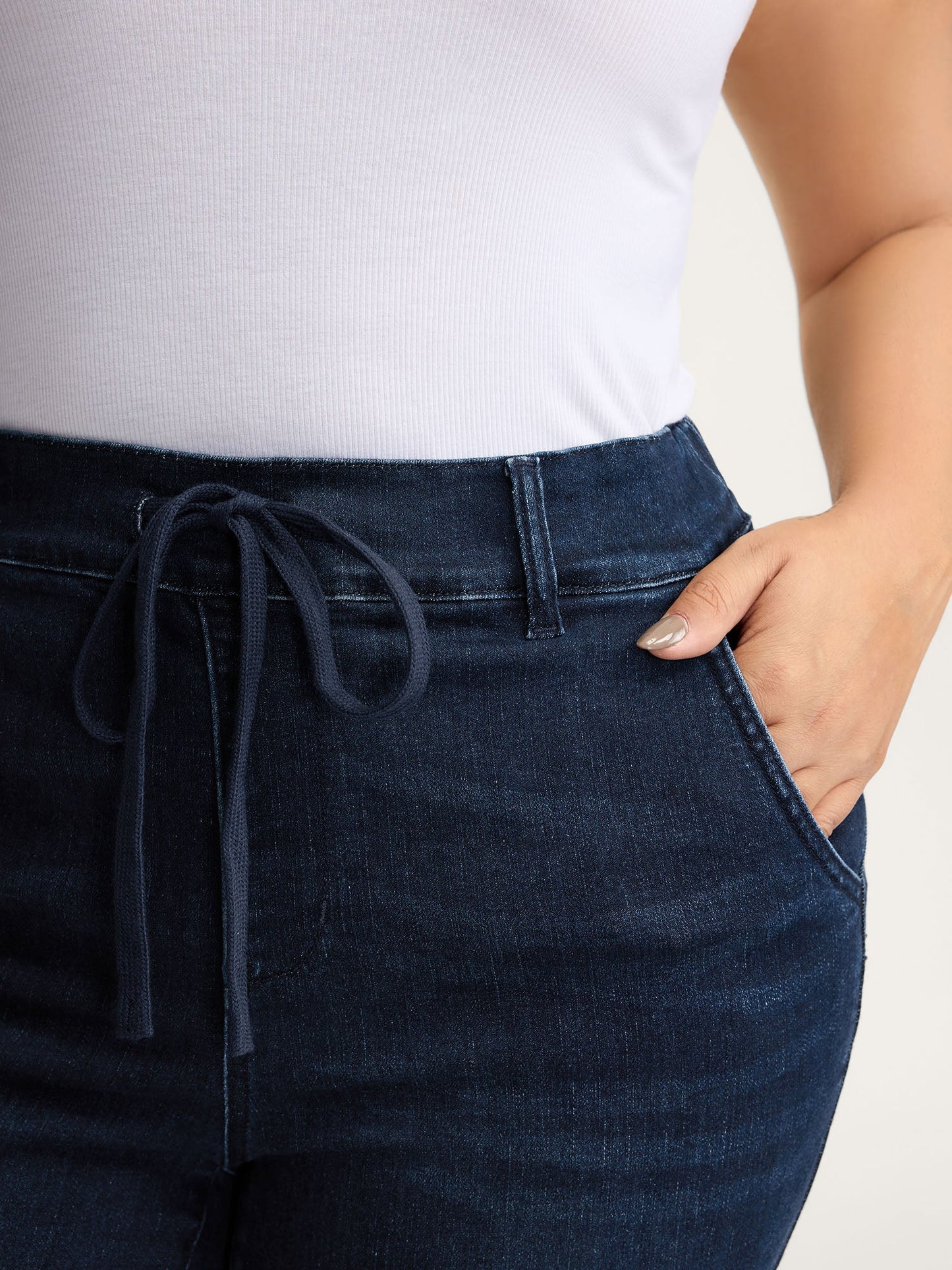 Supersoft Elastic Waistband Drawstring Straight Leg Jeans