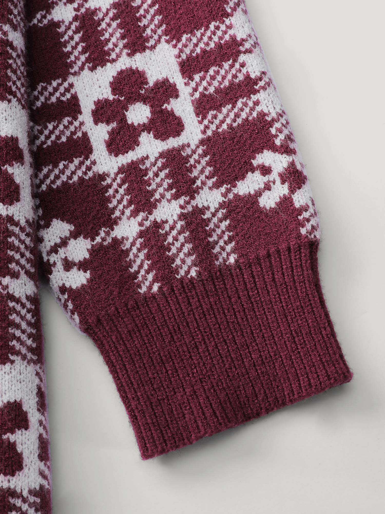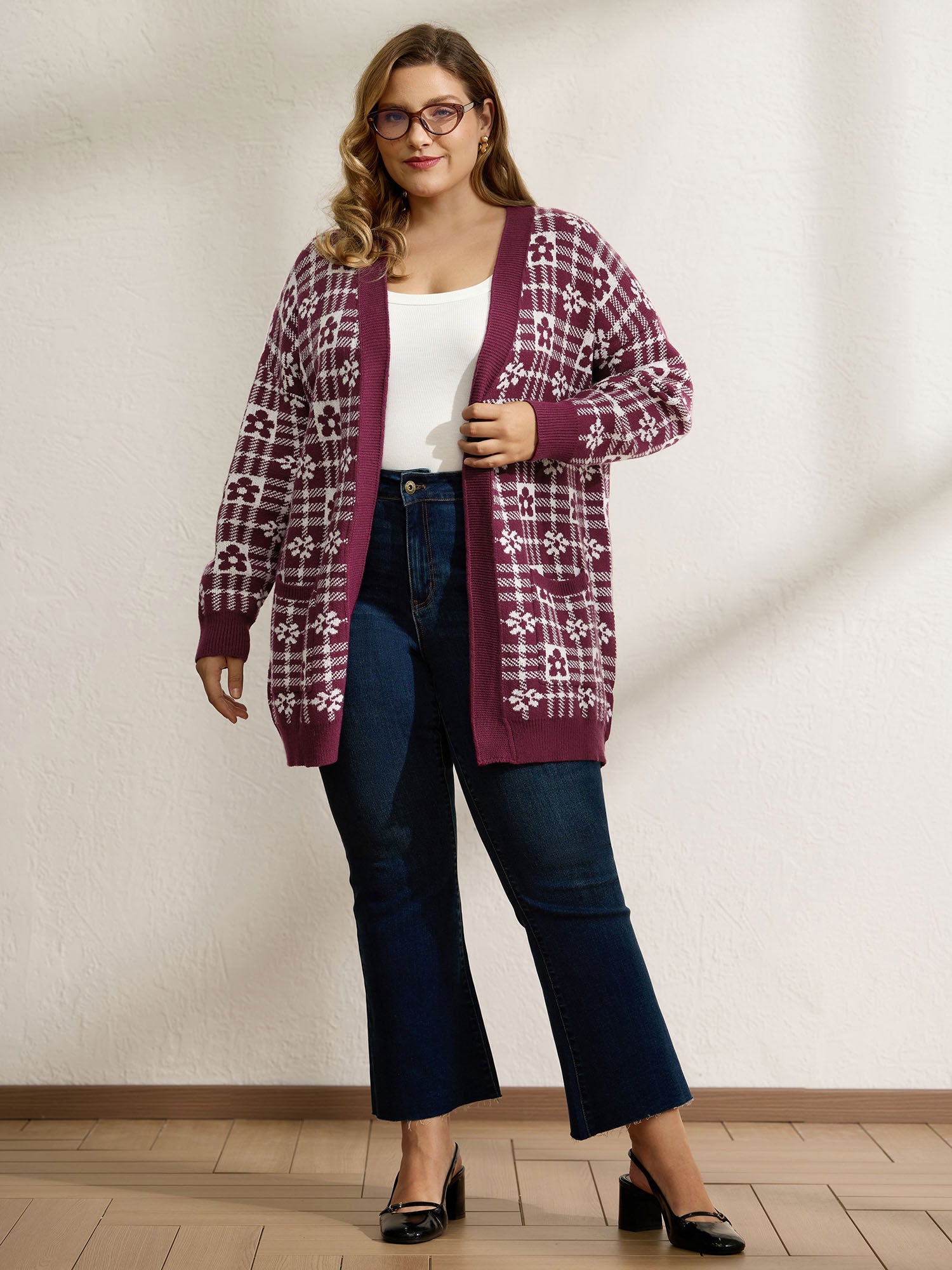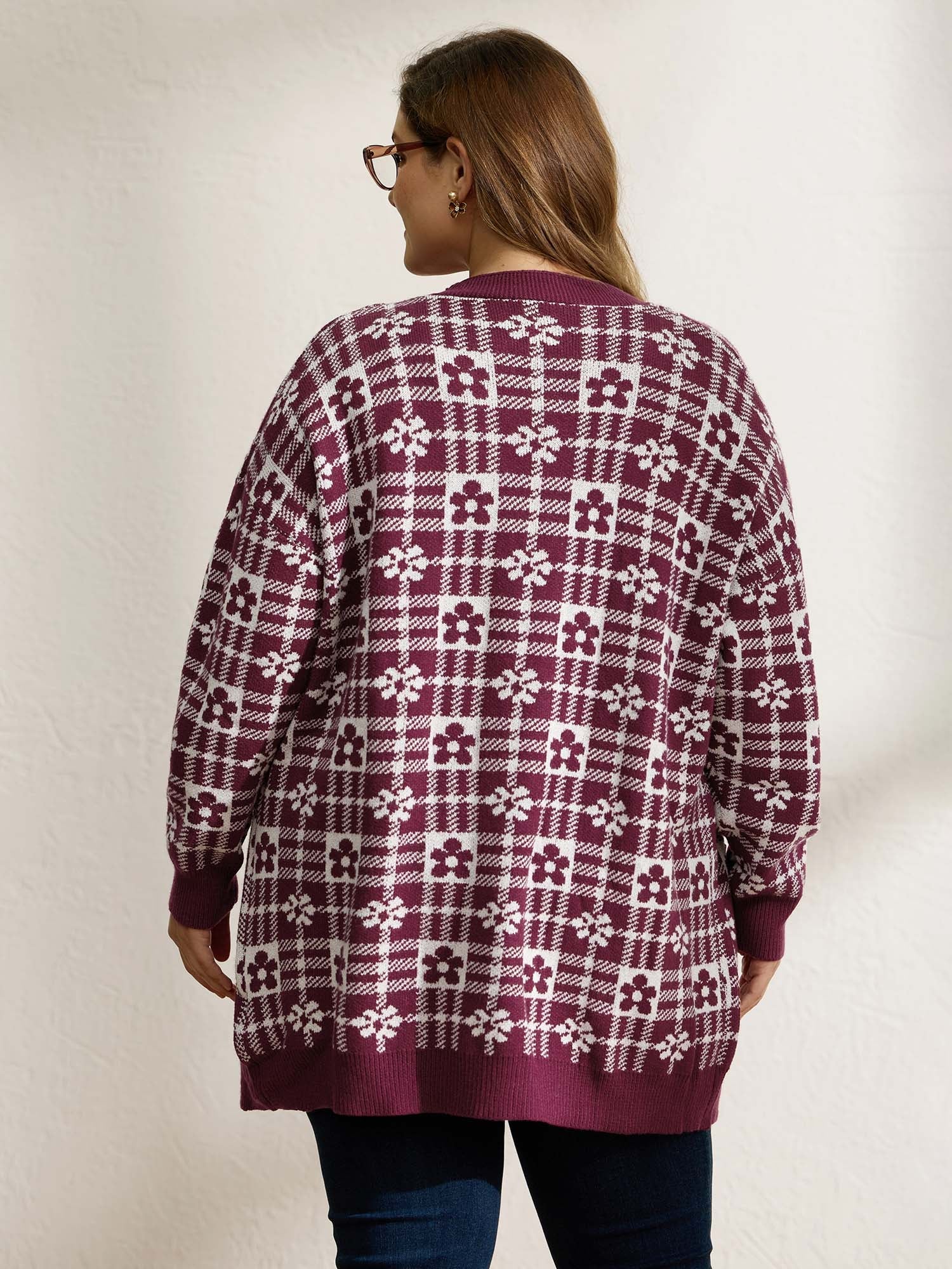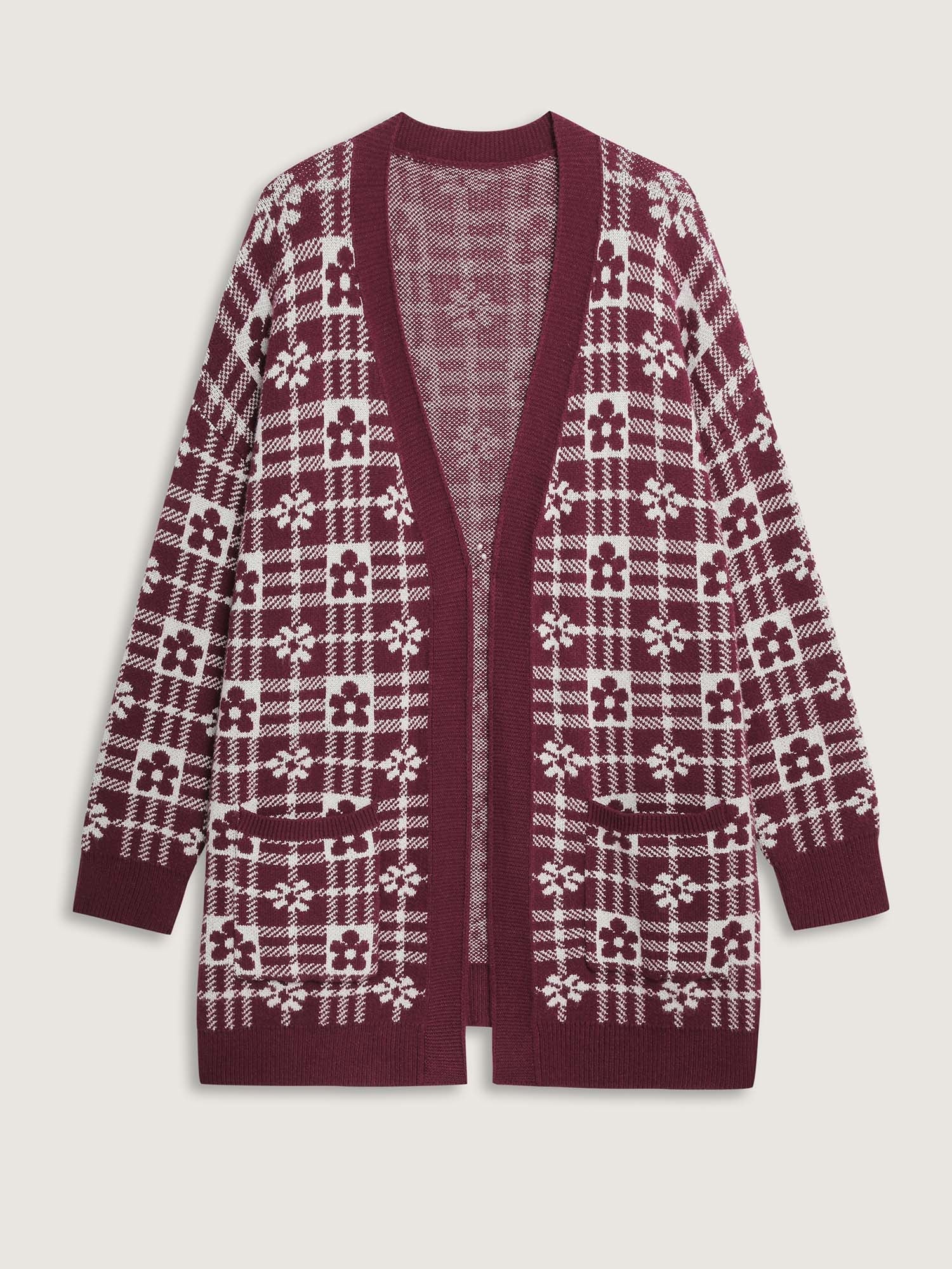 Supersoft Floral Checkered Pockets Knit Cardigan