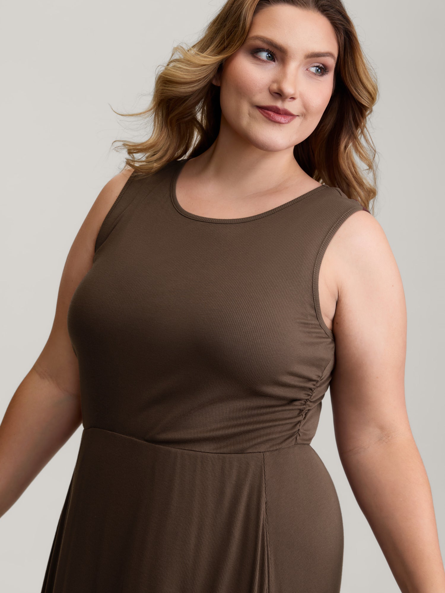 Supersoft Ribbed Knit Cinched-Waist A-Line Maxi Dress