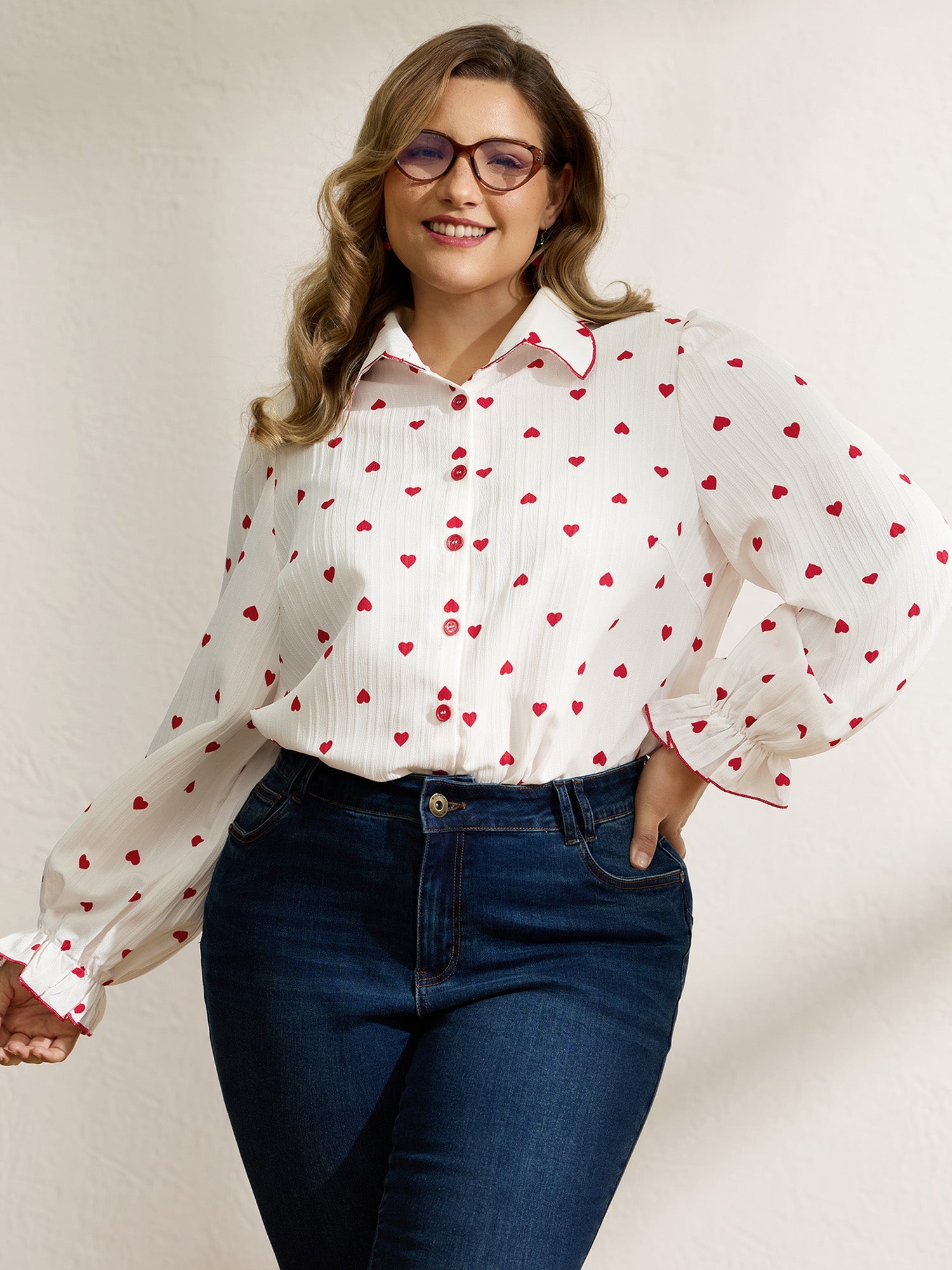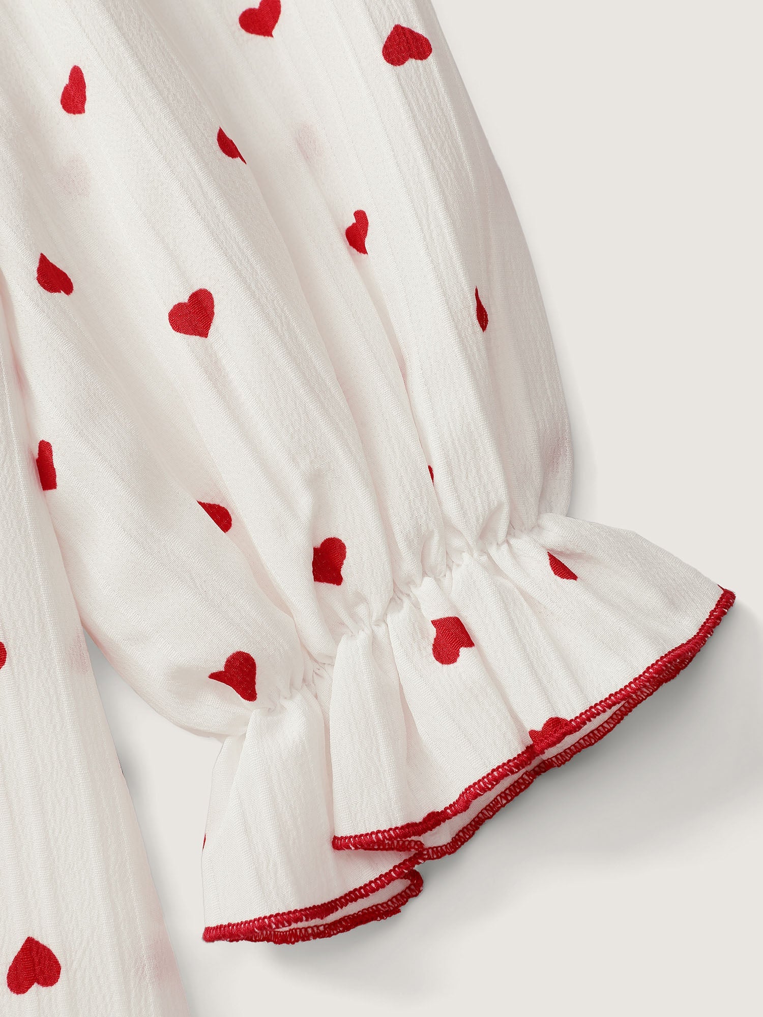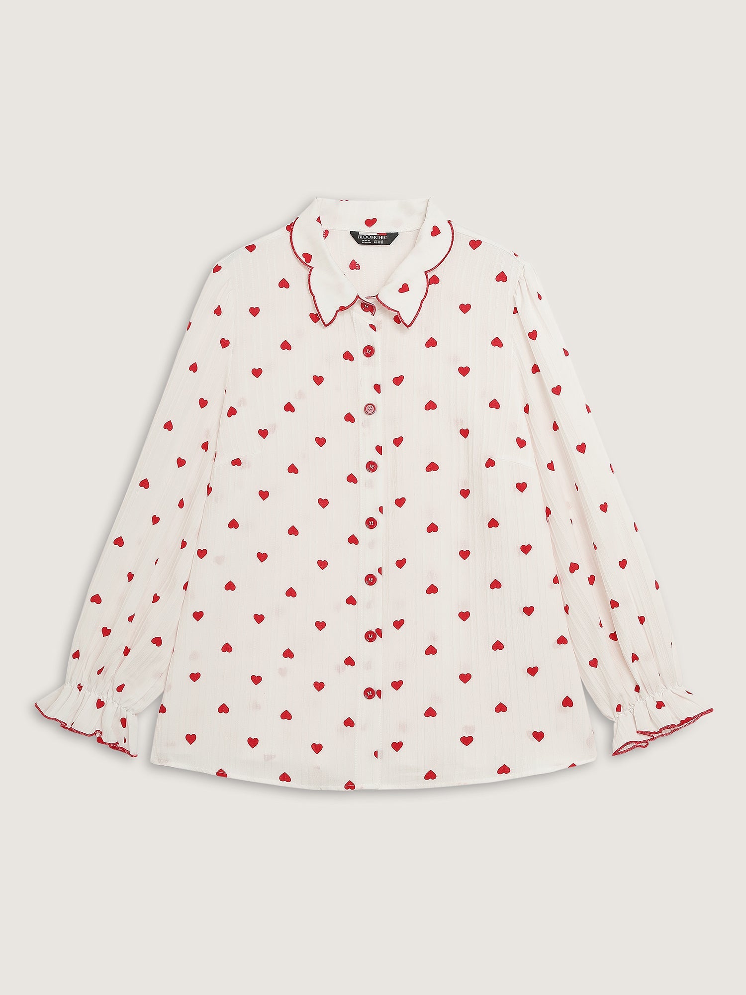 Textured Heart Embroidered Collar Blouse