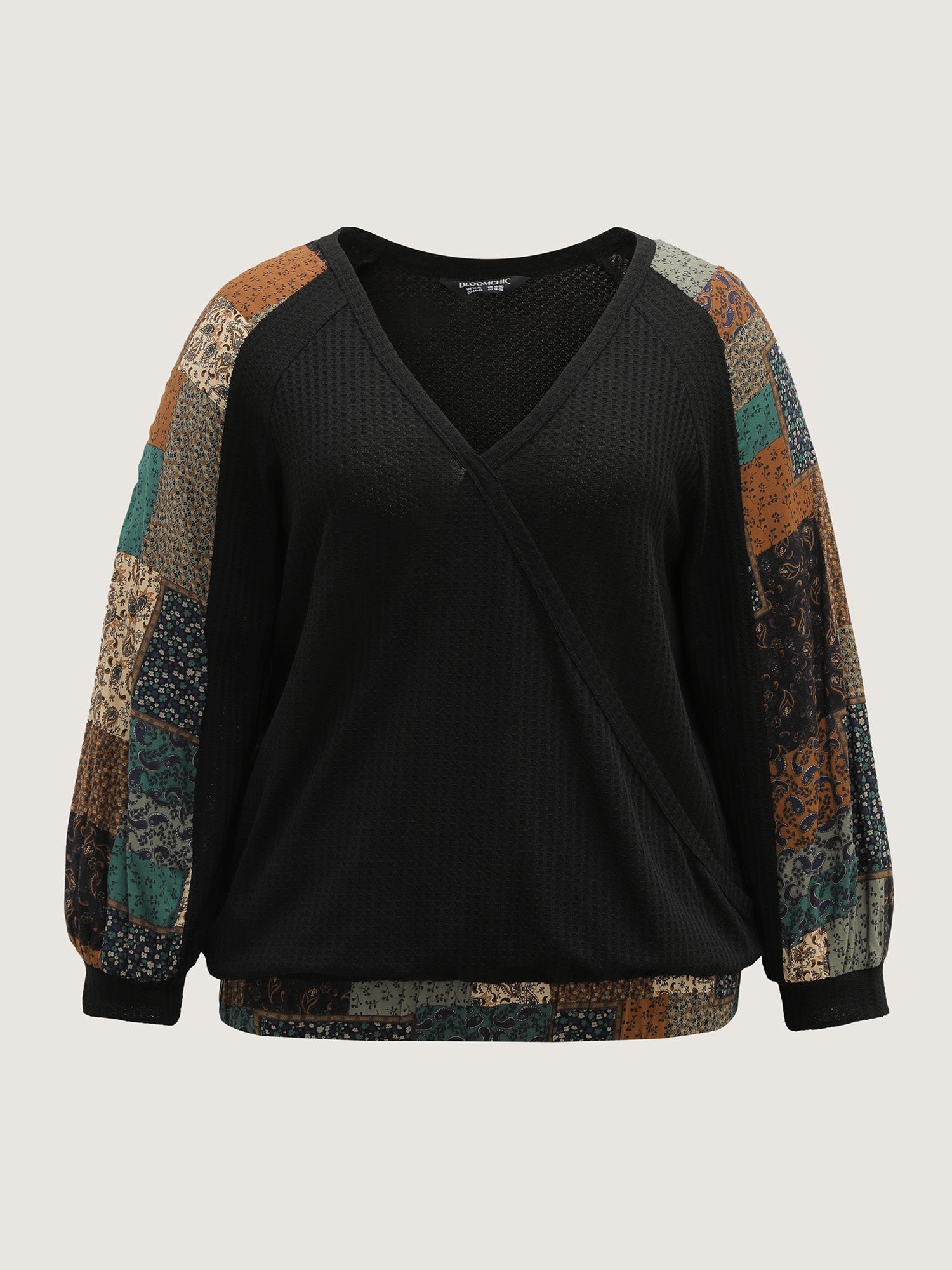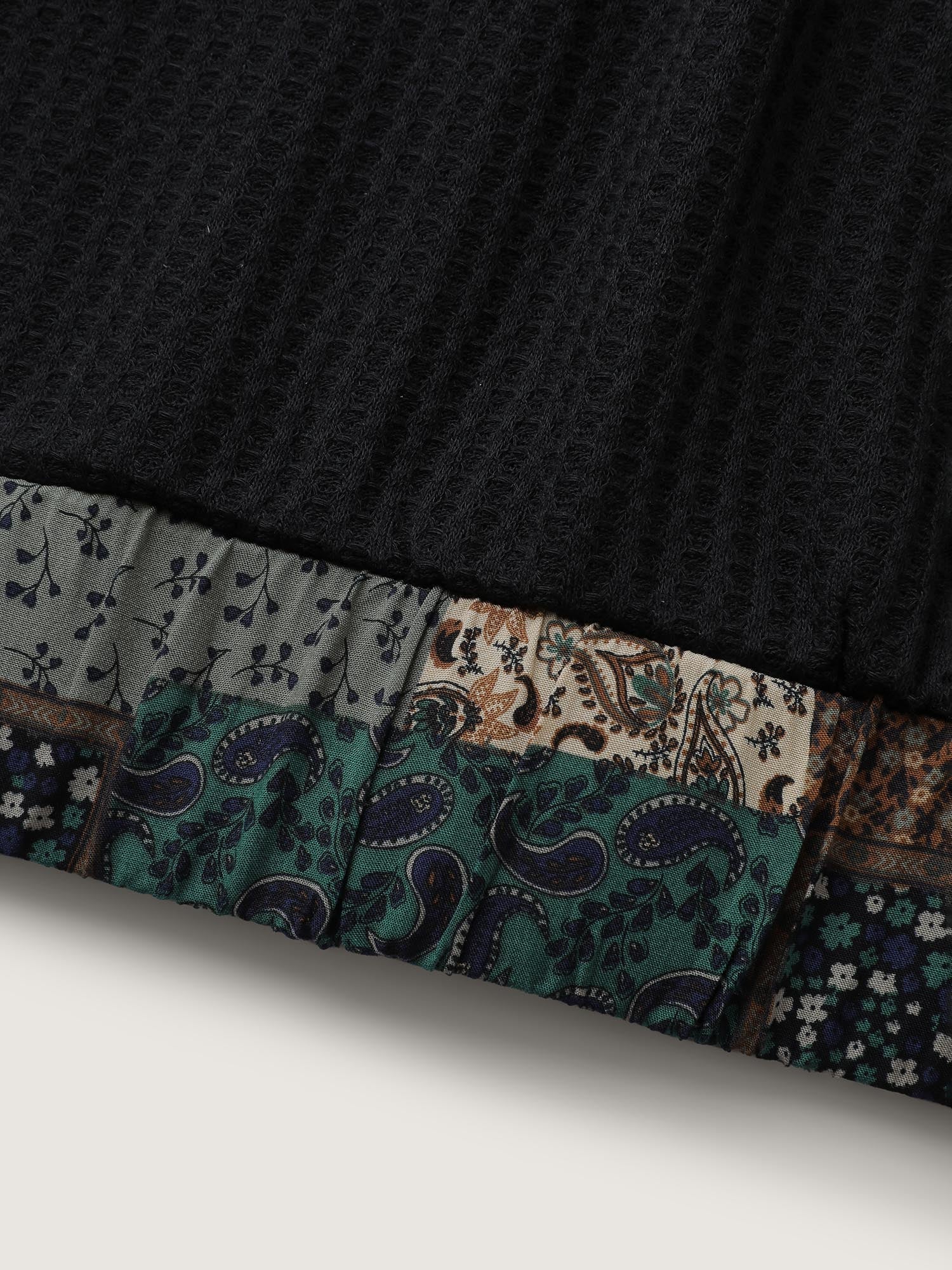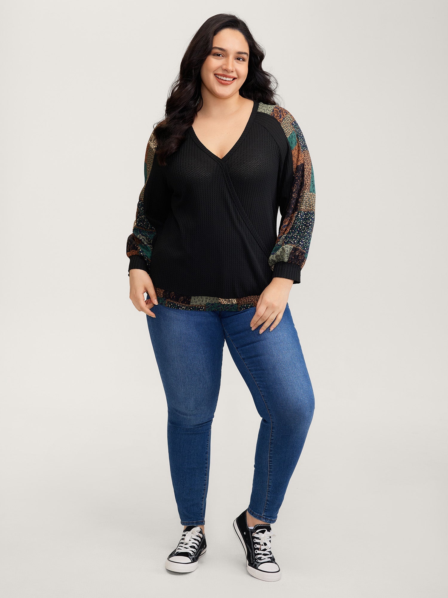 Textured Lace Trim Contrast Sleeve Sweatshirt