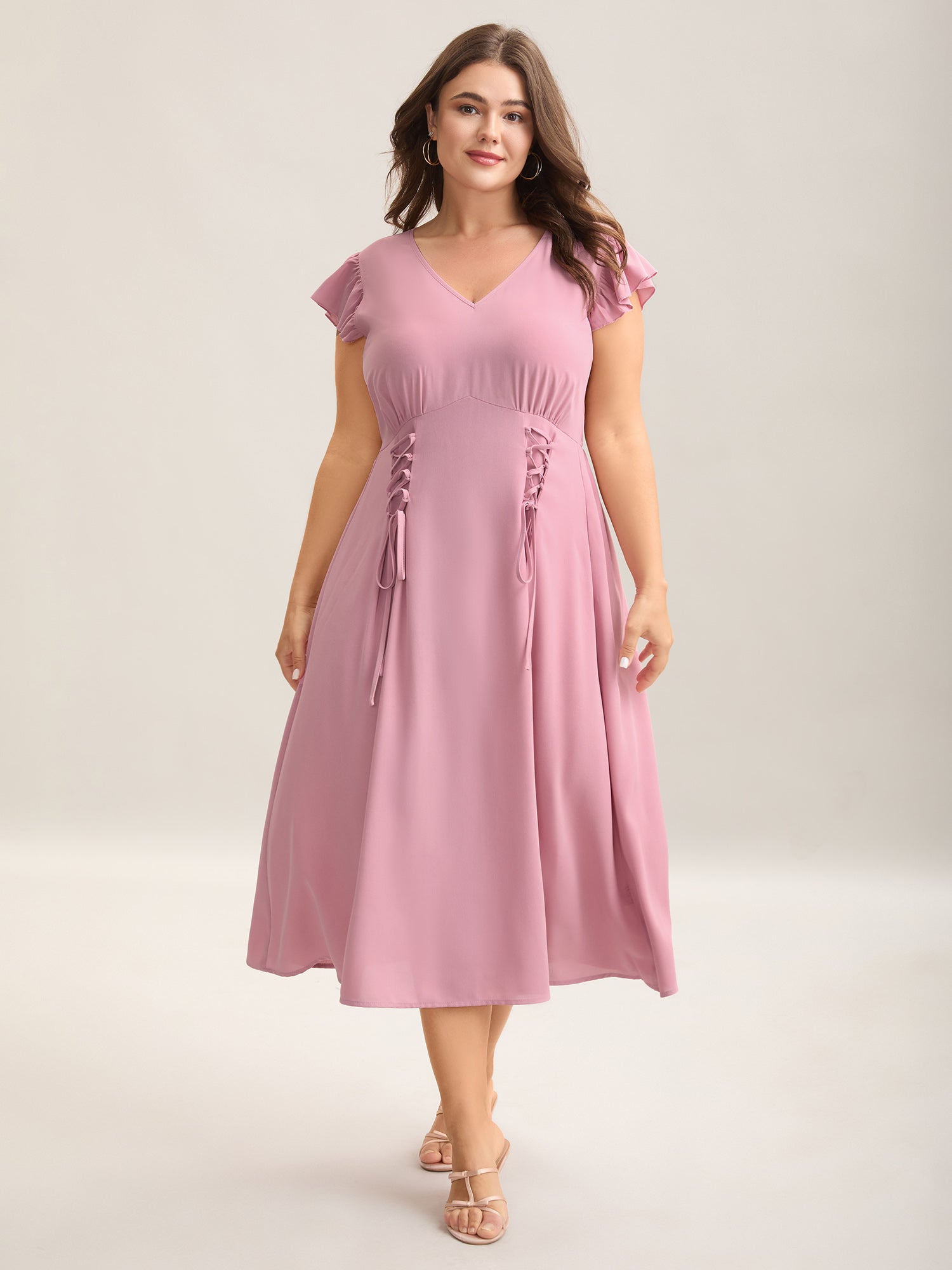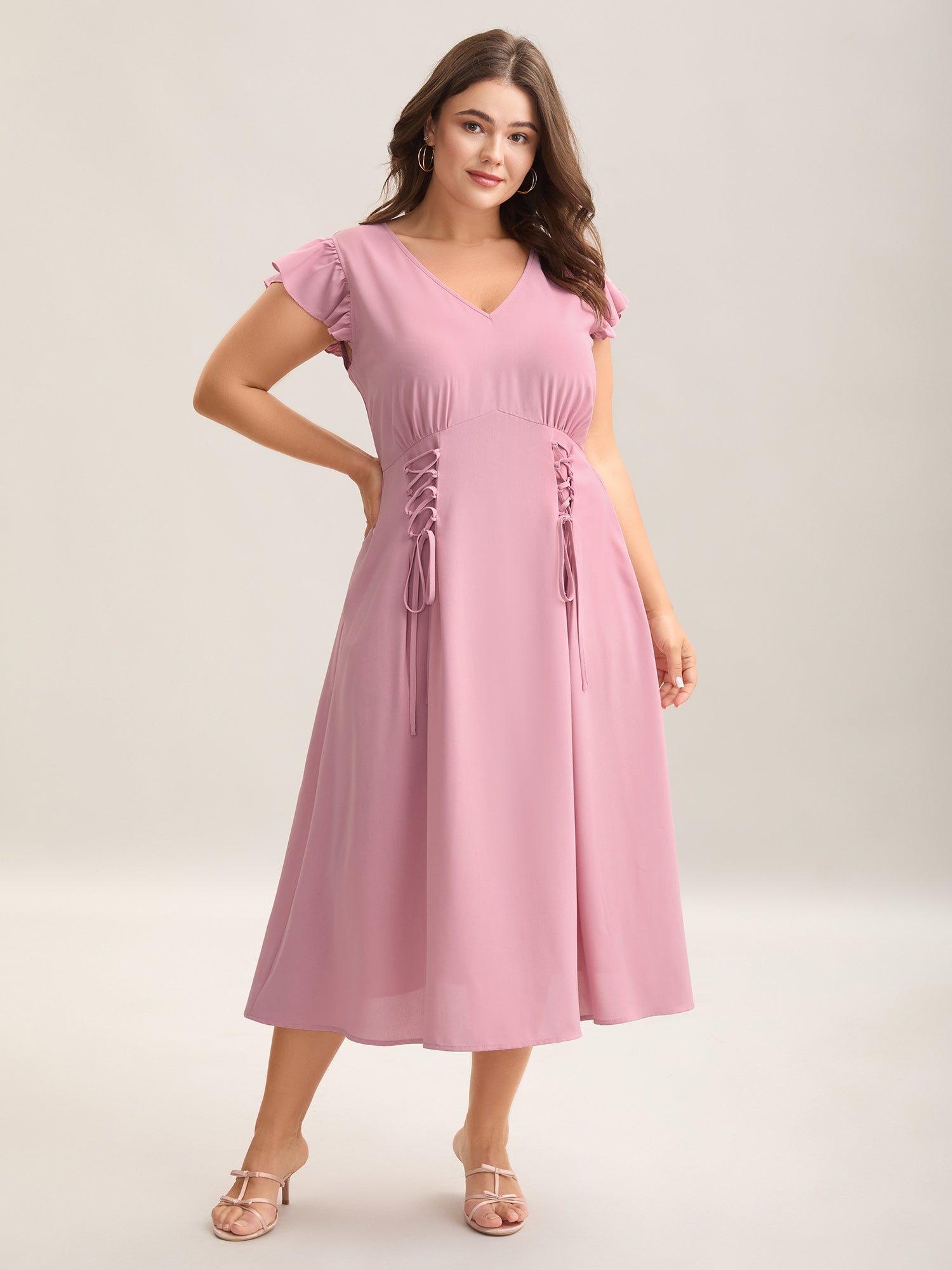 Tie-Up Panels Solid Pockets Midi Dress