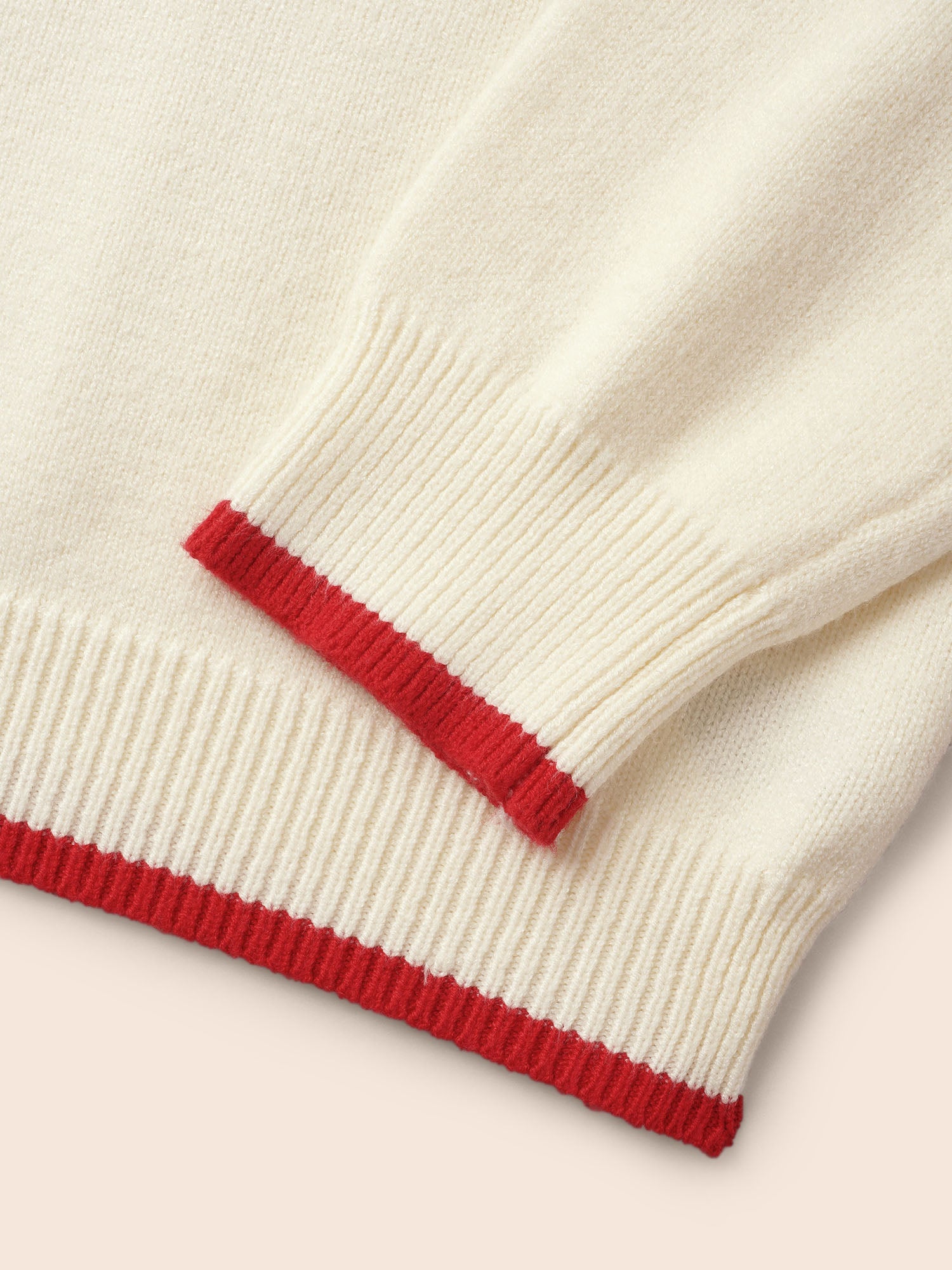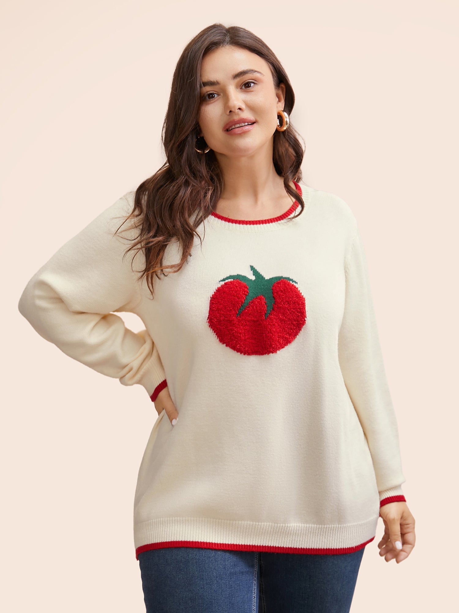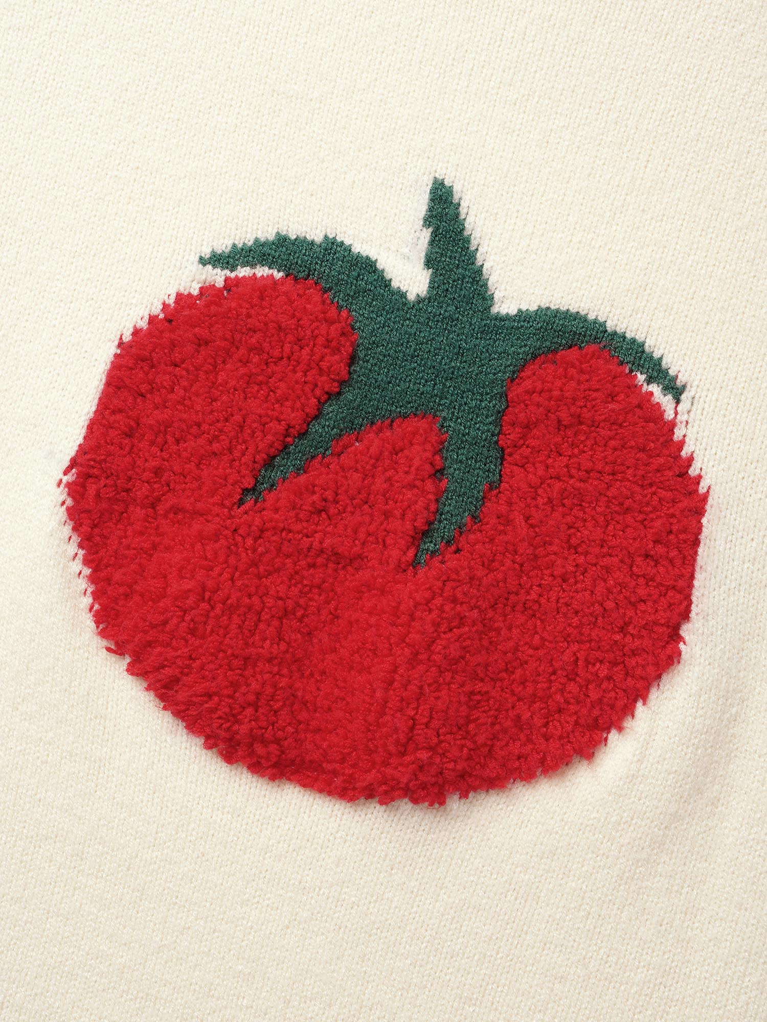Tomato Pattern Embroidered Contrast Trim Pullover