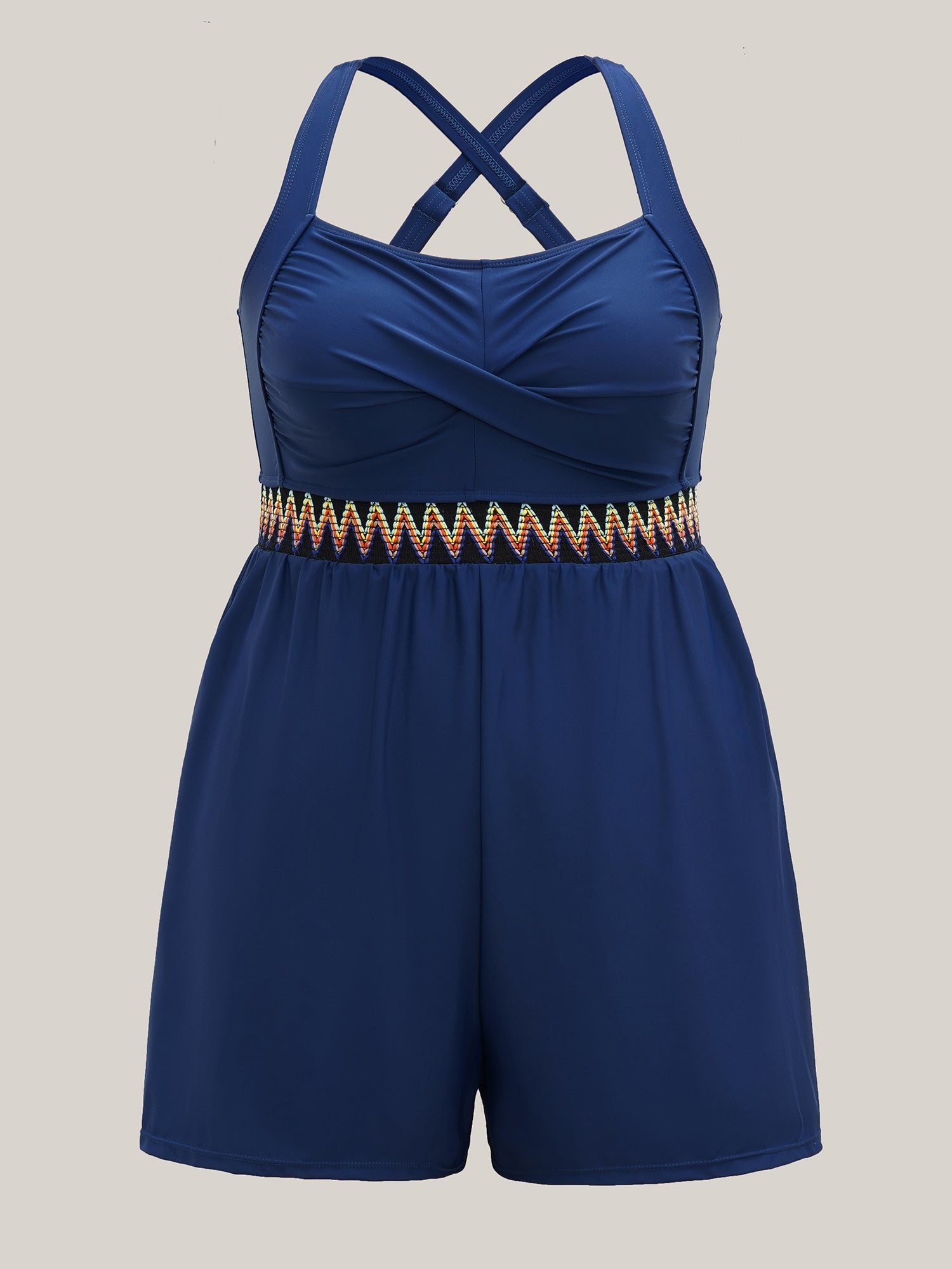 Twist-Front Contrast Webbed One-Piece Swimsuit