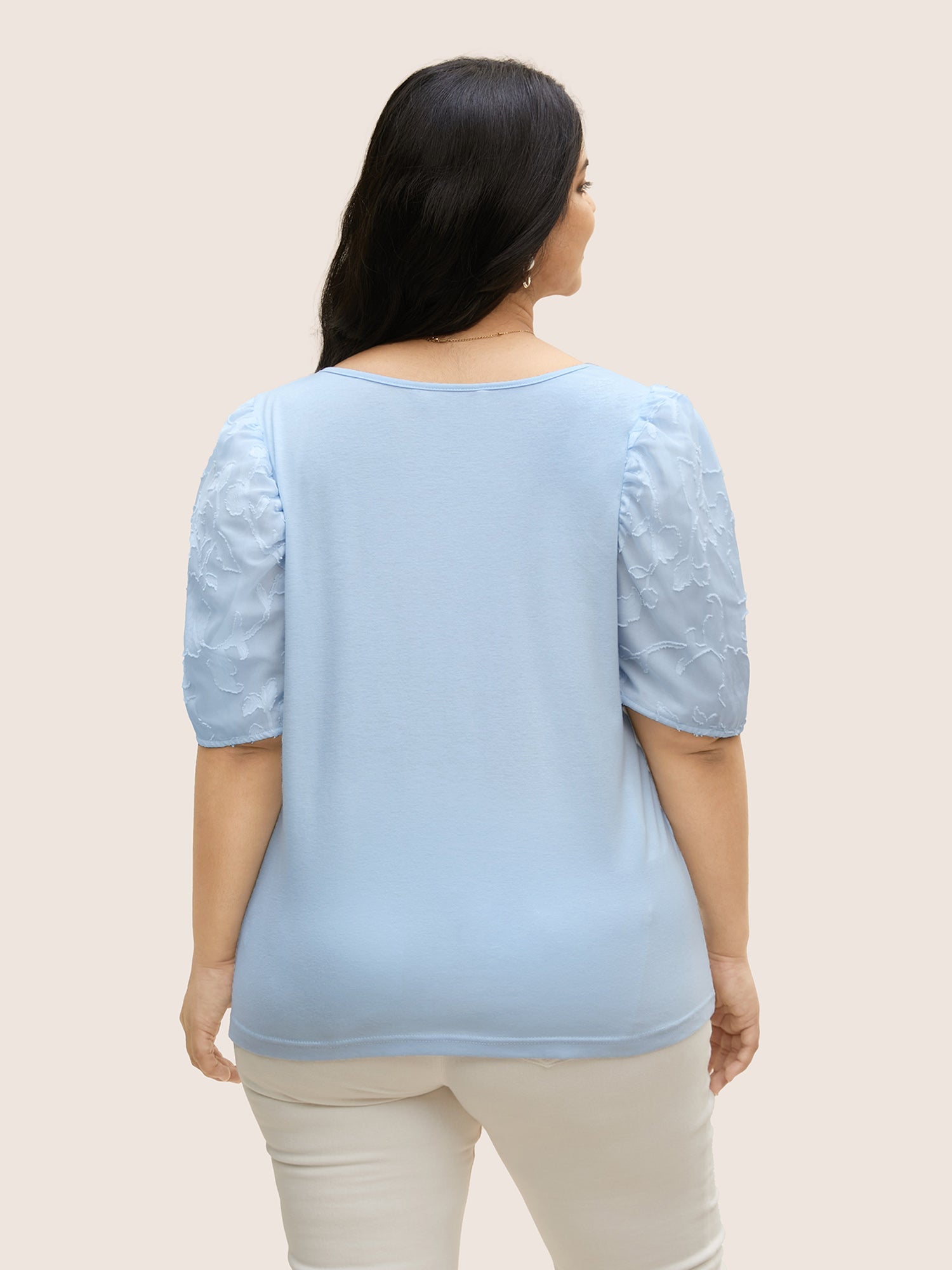 U Neck Chiffon Patchwork Bishop Sleeve T-shirt