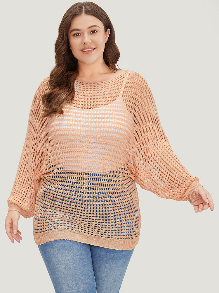 UltraCool Solid Hollow Out Batwing Sleeve Pullover