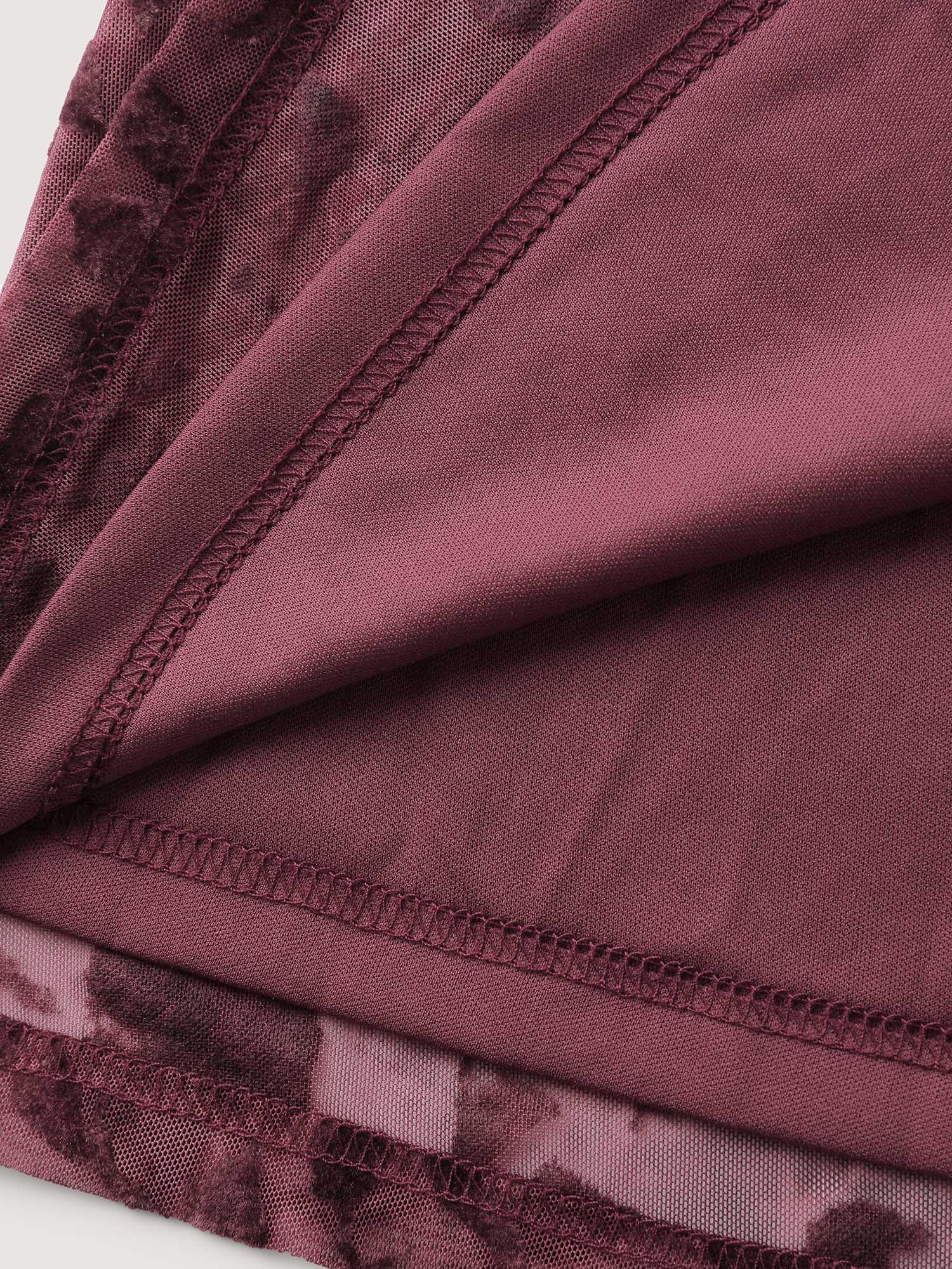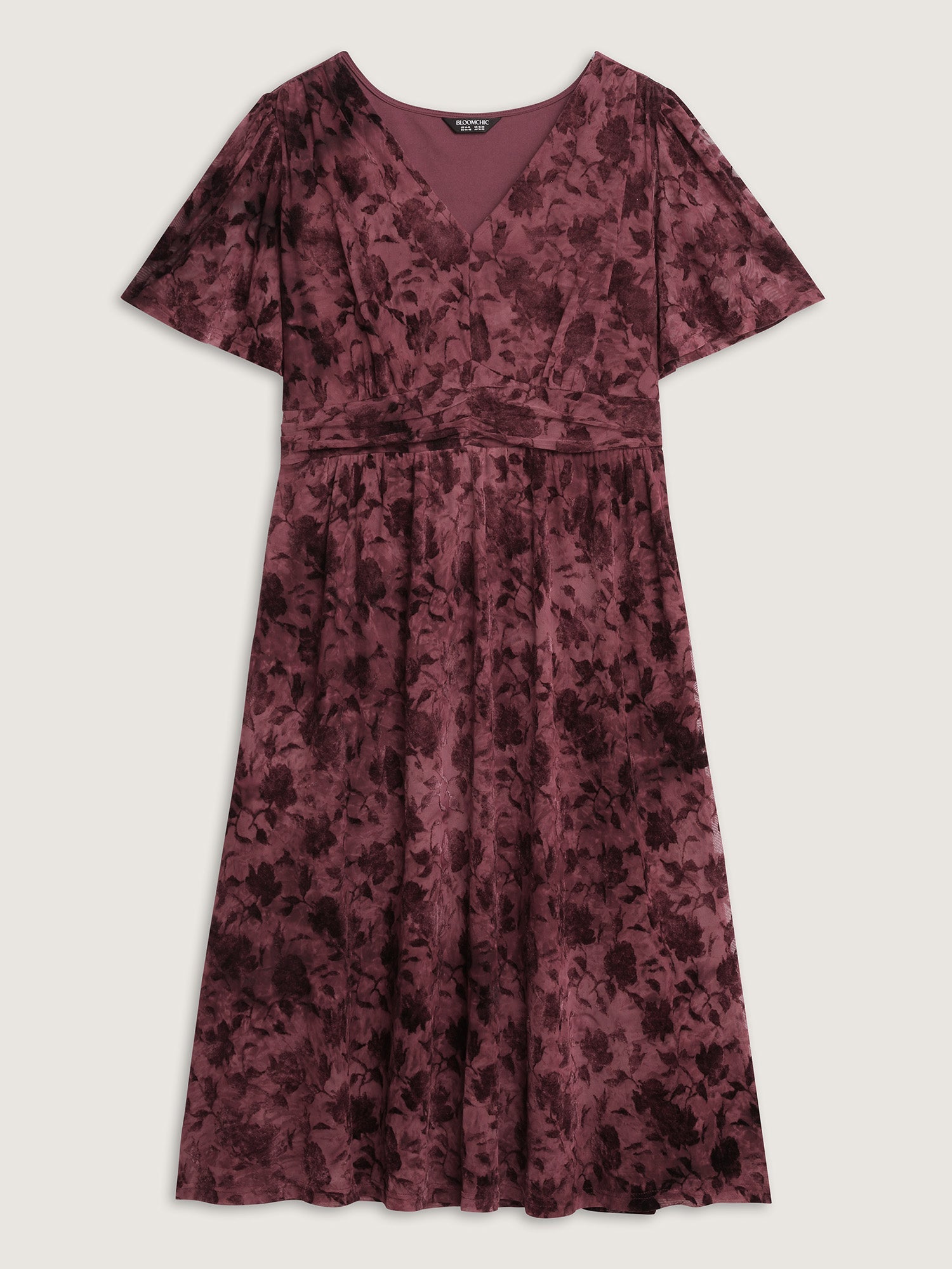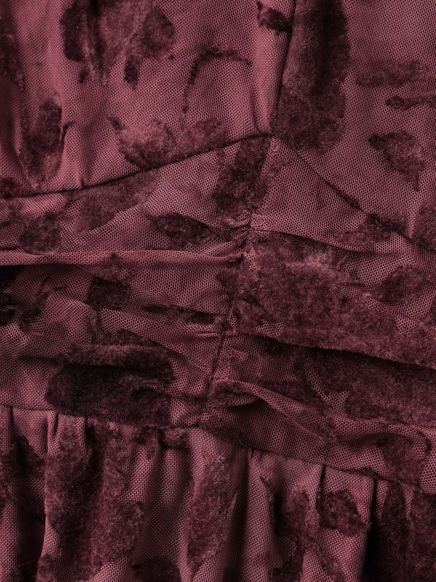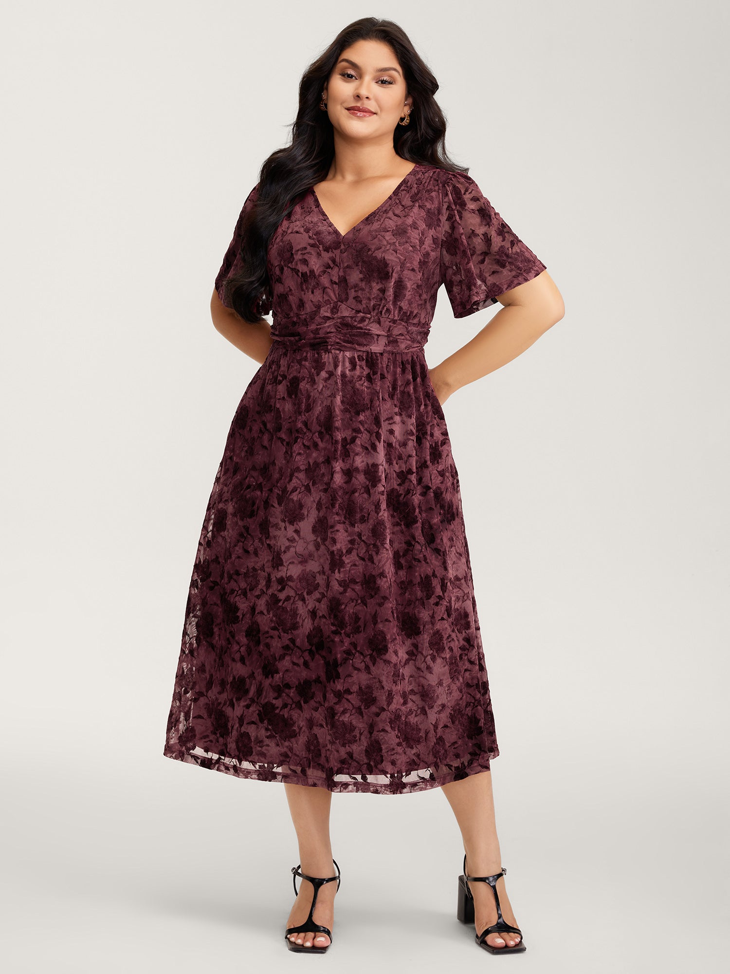 Velvet Jacquard Pleated Waist Sheer Midi Dress