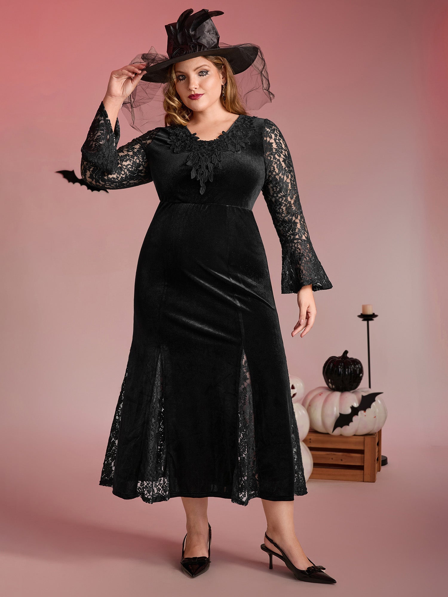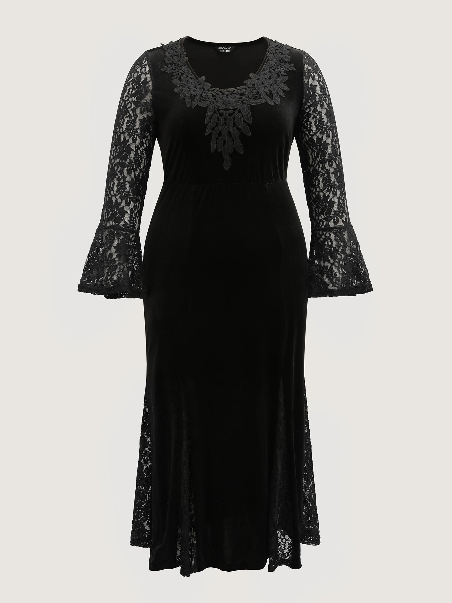 Velvet Lace Sleeve Split Hem Maxi Dress