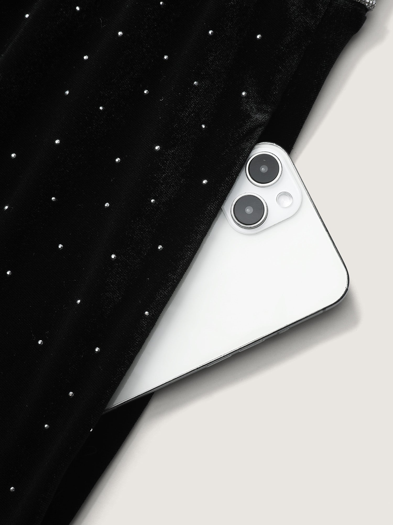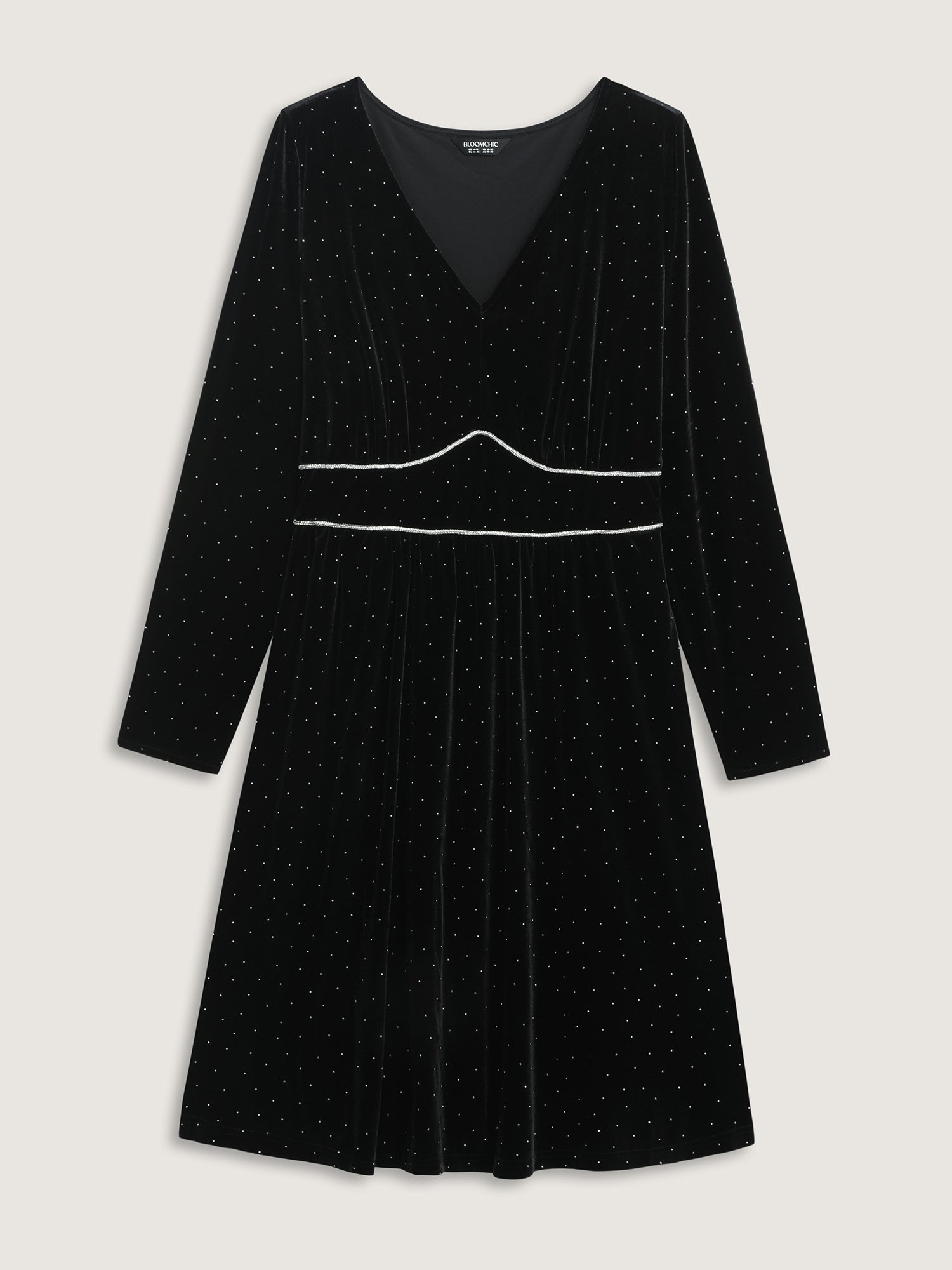 Velvet Rhinestone Cinched-Waist Pockets Midi Dress