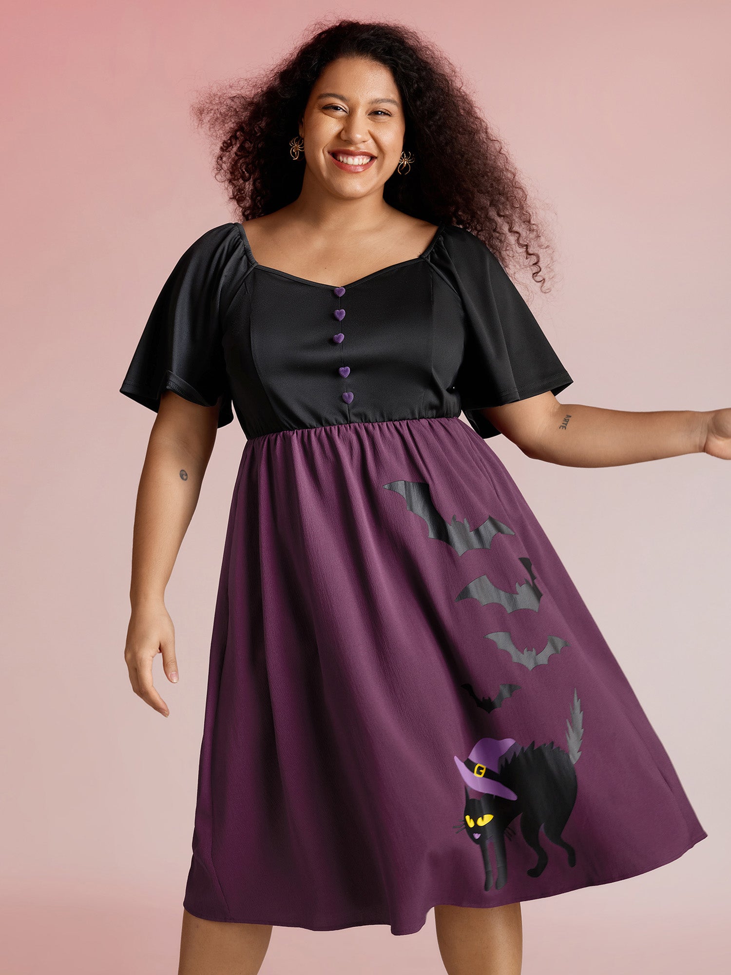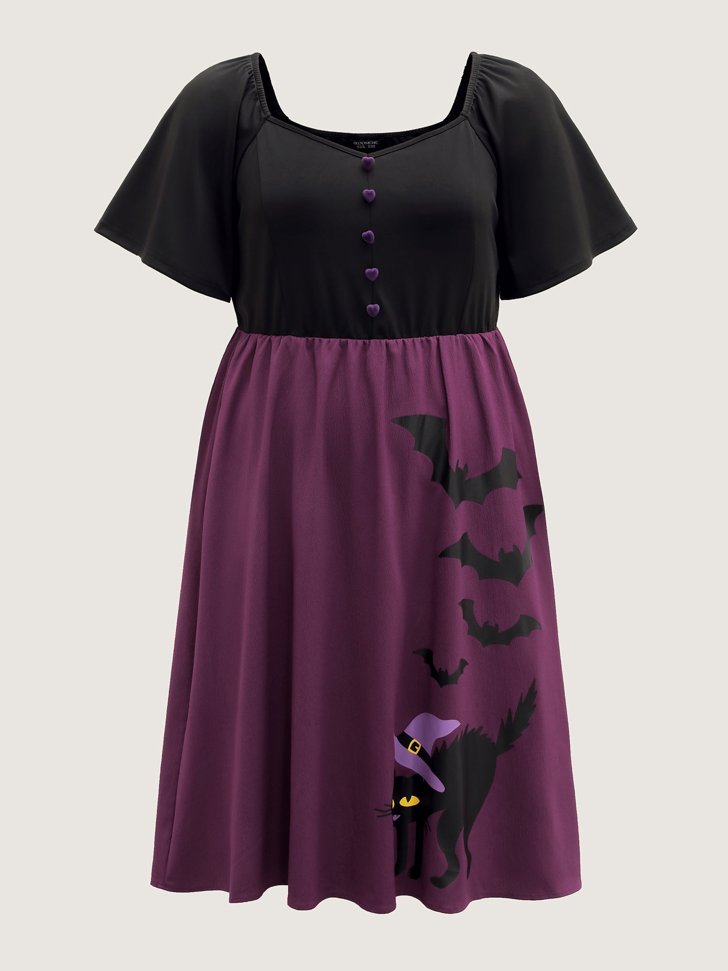 Wicked Halloween Print Contrast Button Midi Dress