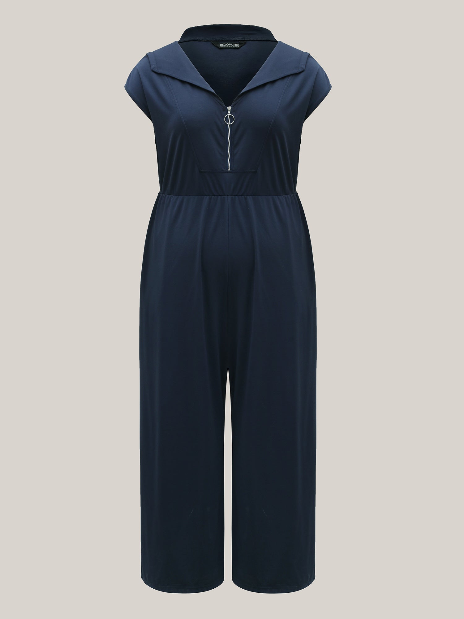 Zipper Front Pockets Collar Jumpsuit